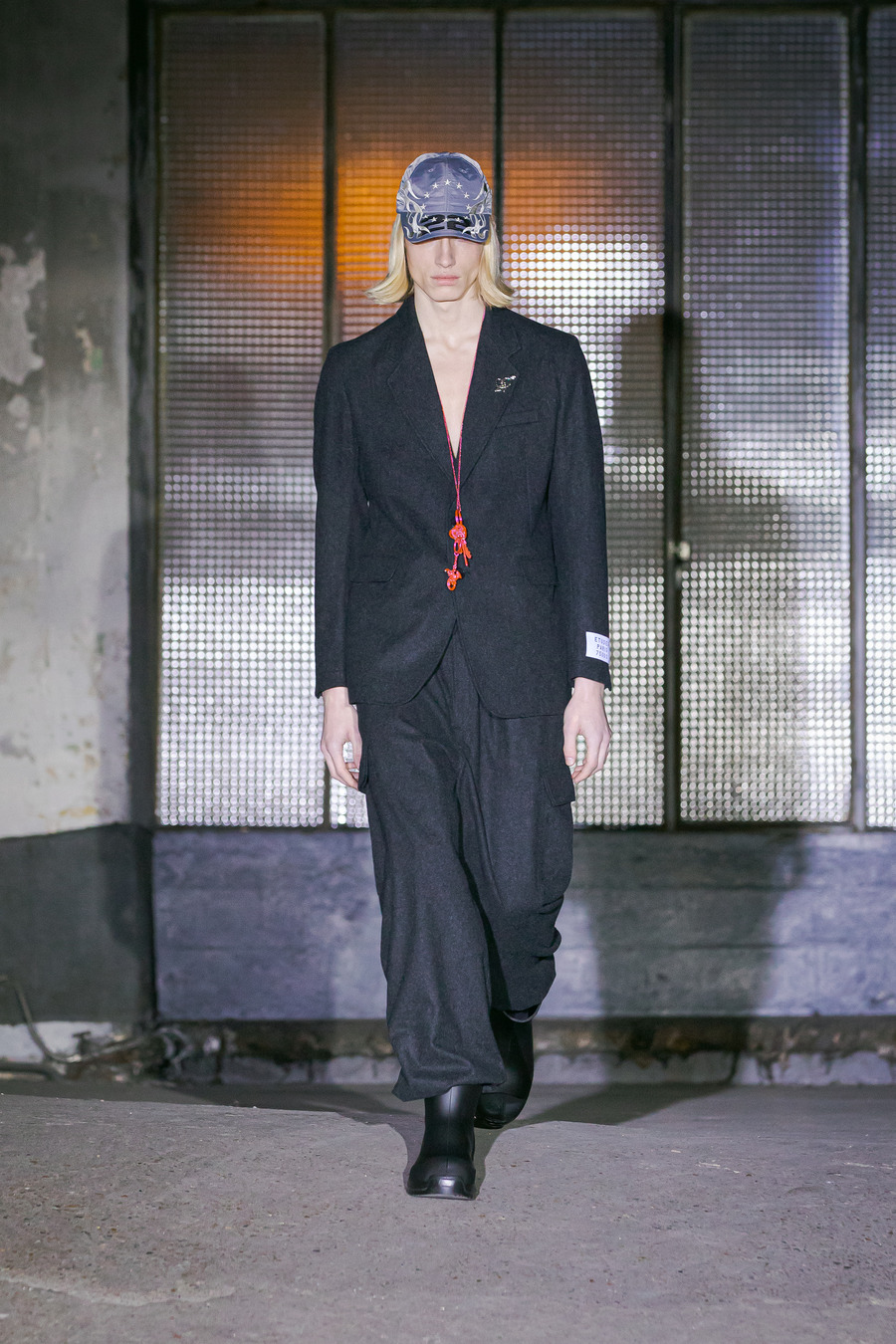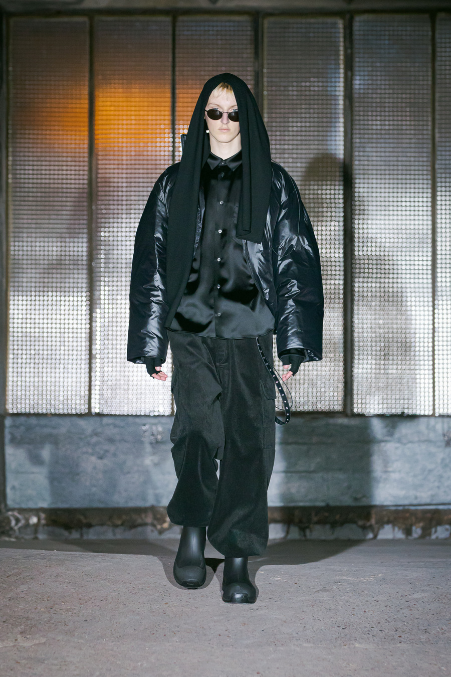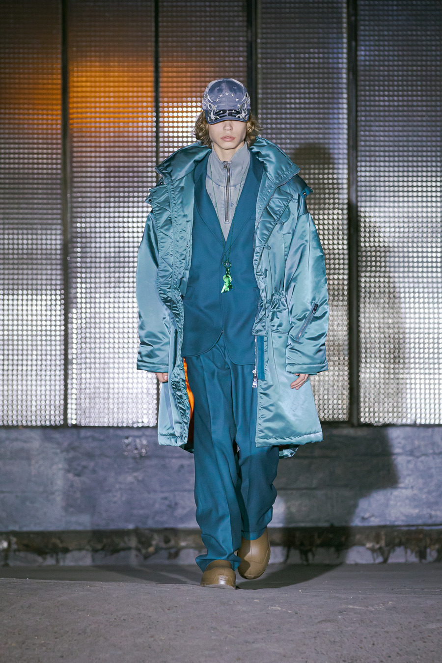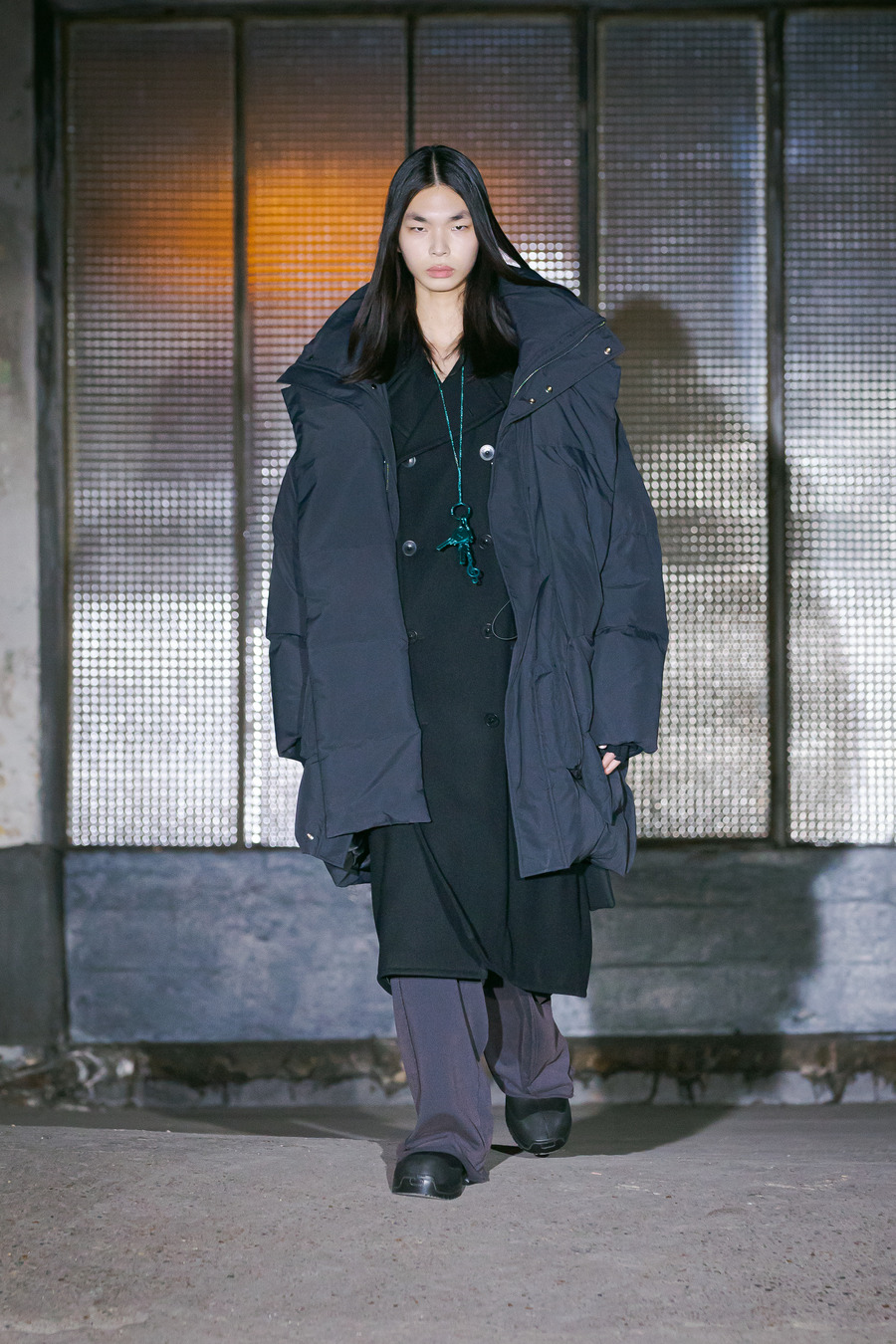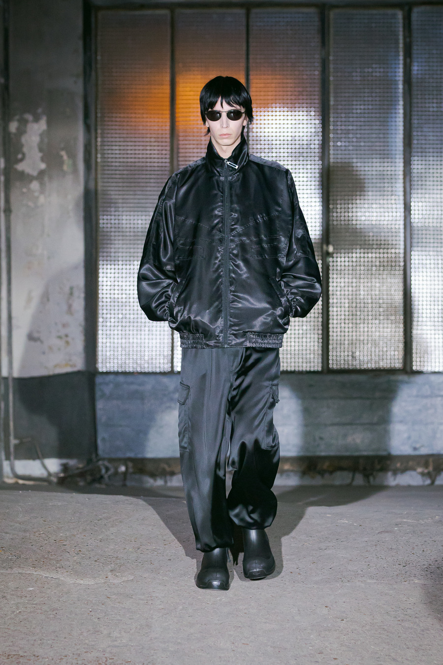 Manifesting in materiality, iconography and the bold proposition of an amplified silhouette, the season’s evolution of the Études vocabulary is fortified by a muted palette that grades through dusty rose and arctic blue to deep green, chocolate, mud, concrete, black and beige. Adopting the archetypes of the masculine wardrobe inextricably linked with city life, the collection is built on tonal harmonies; emboldened by hand and industrial processes from raw-edged tailoring to bleached and destroyed denim.