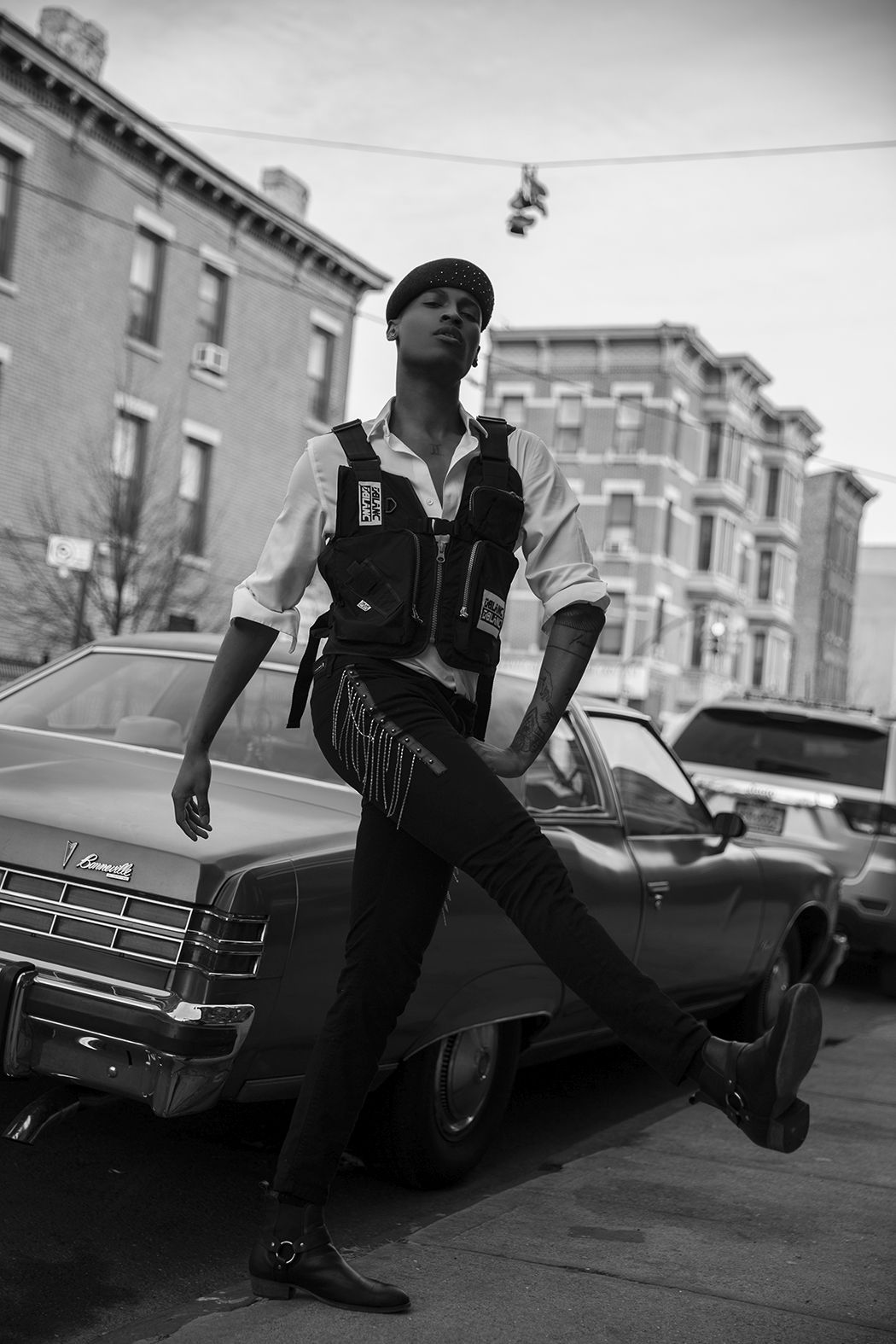 A KALTBLUT exclusive menswear editorial. Photography by Noa Grayevsky, a NYC based photographer. Starring model & dancer Serghinio Giovanni. Styling by Vincent Smith. Retouching by Amanda Unger. Going beyond normal and safe photography Noa Grayevsky has been focusing on increase the level of cultural and ethnical diversity within the fashion industry. Noa inspired by unique subjects often capture in natural street environment and black and white to keep a raw and authentic image.