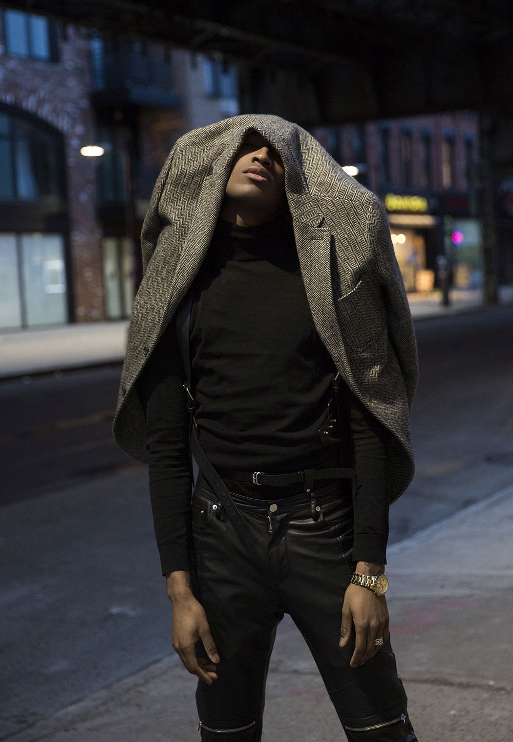 A KALTBLUT exclusive menswear editorial. Photography by Noa Grayevsky, a NYC based photographer. Starring model & dancer Serghinio Giovanni. Styling by Vincent Smith. Retouching by Amanda Unger. Going beyond normal and safe photography Noa Grayevsky has been focusing on increase the level of cultural and ethnical diversity within the fashion industry. Noa inspired by unique subjects often capture in natural street environment and black and white to keep a raw and authentic image.