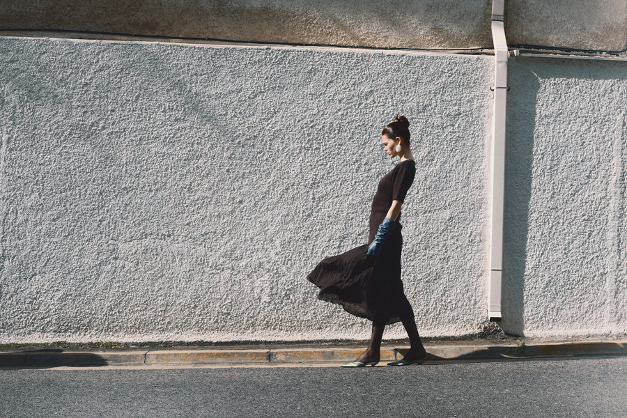 A KALTBLUT exclusive story that unfolds in a neighbourhood under the Acropolis in Athens, capturing the interplay of everyday life and fleeting moments of escapism. Photography by Kiki Doxaki. Art Direction & Styling by Evgenios Anastasiadis. The model is Ondine Erye. Fashion by Markellos Polydorou, Nestoras Dimopoulos, The Row, Calzedonia.