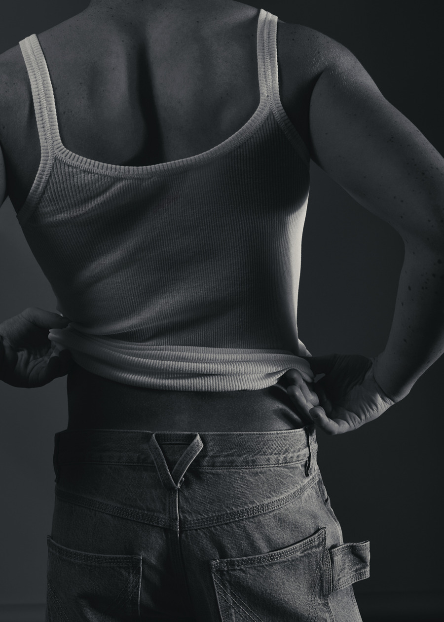 A KALTBLUT exclusive. Photography by Laura Stamenkovic. The model is Azuka Ebert signed at Modelwerk. Makeup by Laura Laszek. Styling by Sebastian Burch using Prada, Bottega Veneta, Martine Rose, Gucci, Miu Miu, Burberry, and Dolce&Gabbana. Retouching by Romy Oberender.