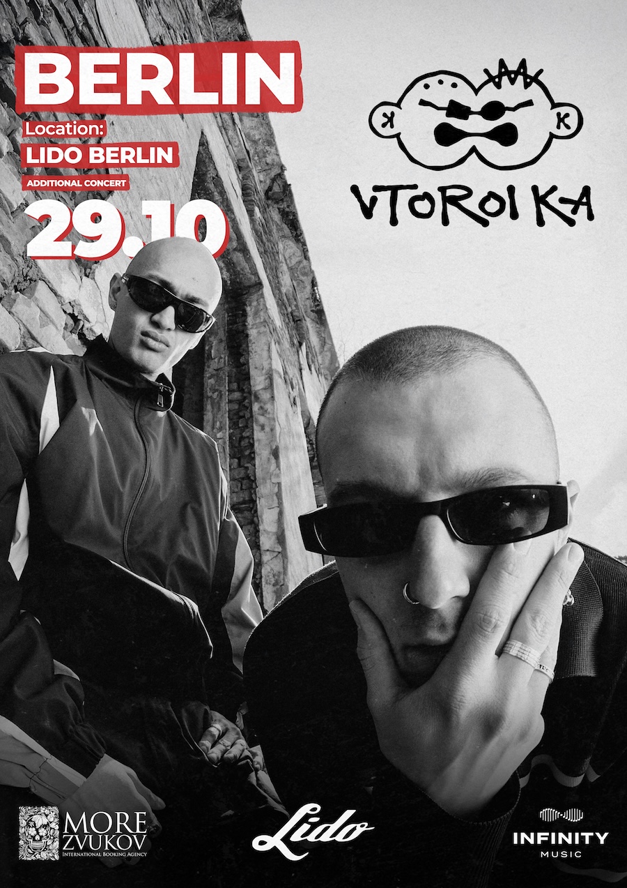 Please mark your calendars for a sensational night on October 29th at LIDO, as Vtoroi Ka, the dynamic duo from Bishkek, Kyrgyzstan, brings their genre-defying sound to Berlin. This vibrant band, formed in 2017 by childhood friends Ilya and Sultan, has made waves in the underground scene with their innovative approach to music. With their first two studio albums, the hip-hop-influenced Dependence Day (2020) and the wildly eclectic Serial (2022), they ignited a spark that has transformed into a blazing online presence, amassing over 200,000 monthly listeners on Spotify in under a year.