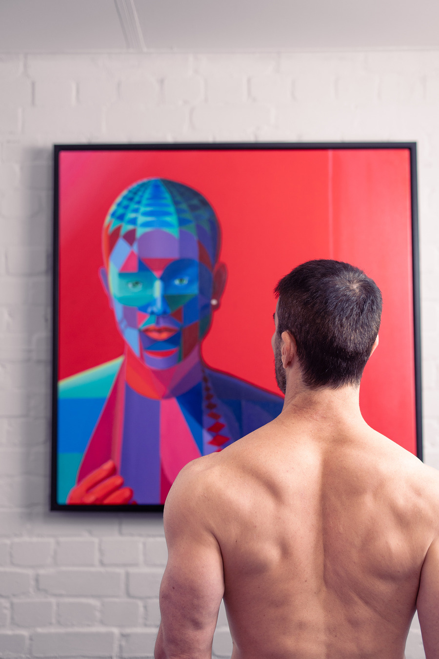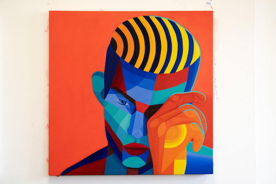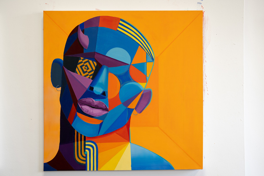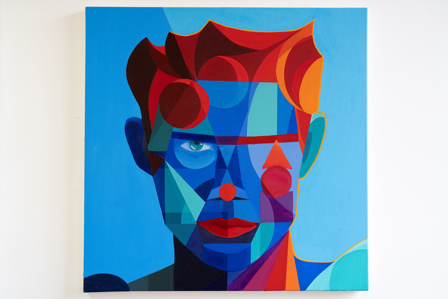 Focusing on contemporary abstract figurative works rendered in traditional oil paint, Vodden employs insights from experimental psychology to create a bold geometric style. With intense palettes, he commands viewers’ attention and communicates evocative stories, fostering emotional and physiological responses that forge a profound connection between the artist, viewer, and subject.
