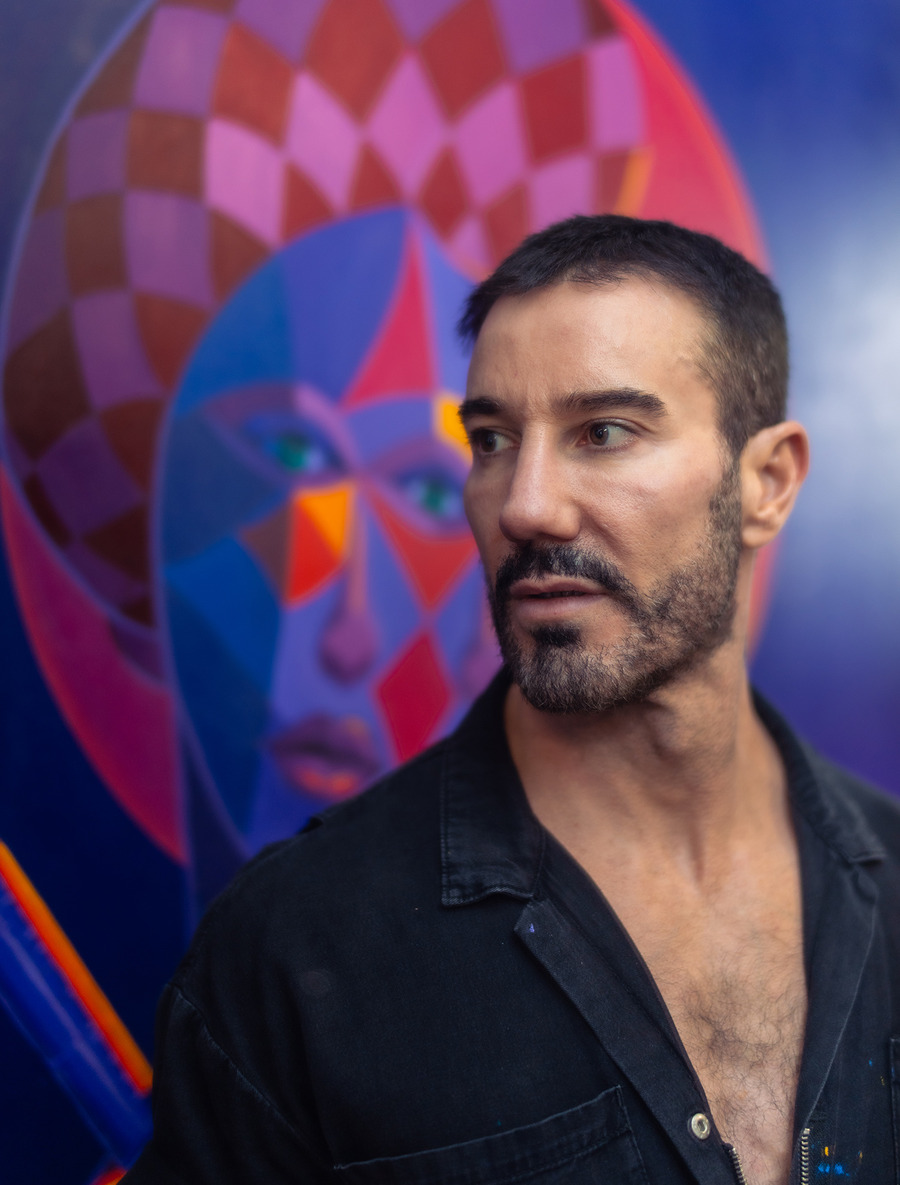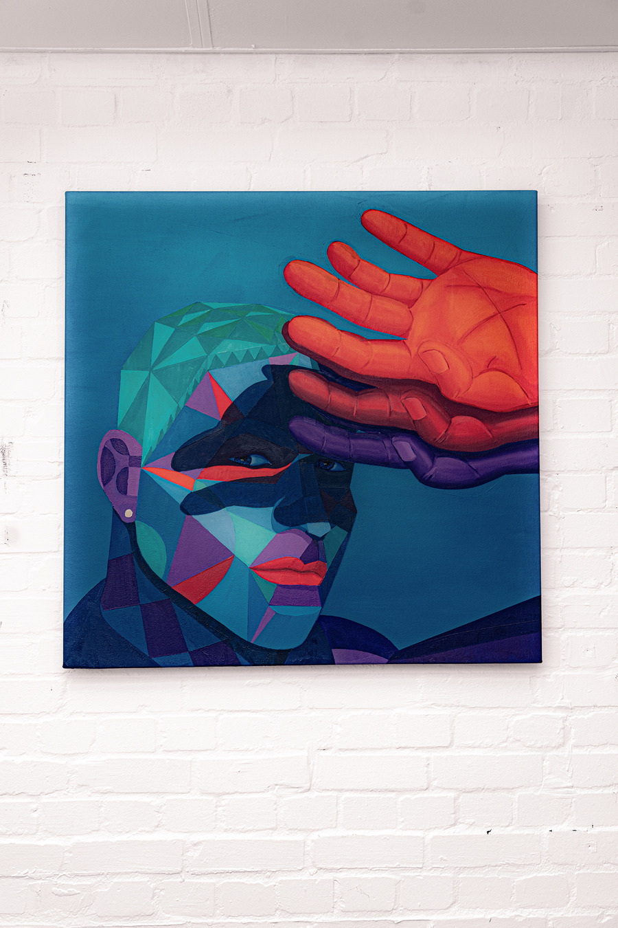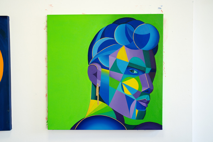 Focusing on contemporary abstract figurative works rendered in traditional oil paint, Vodden employs insights from experimental psychology to create a bold geometric style. With intense palettes, he commands viewers’ attention and communicates evocative stories, fostering emotional and physiological responses that forge a profound connection between the artist, viewer, and subject.