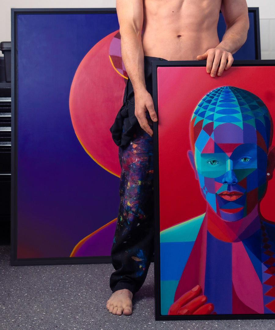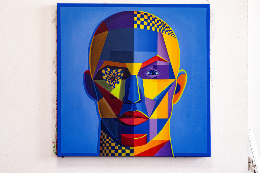 Though relatively new to the professional art scene, Vodden has been a lifelong creative. Since childhood, he has honed his skills in figurative realism drawing. His professional artistic journey began during the UK COVID-19 lockdowns in 2020, marked by the creation of “Orange Ebby”—the inaugural piece in his exploration of identity through abstract portraits. He revels in the contrast of utilizing traditional mediums like oil paint with deliberately controlled techniques to achieve intensely contemporary images that, at first glance, could be mistaken for digital works.