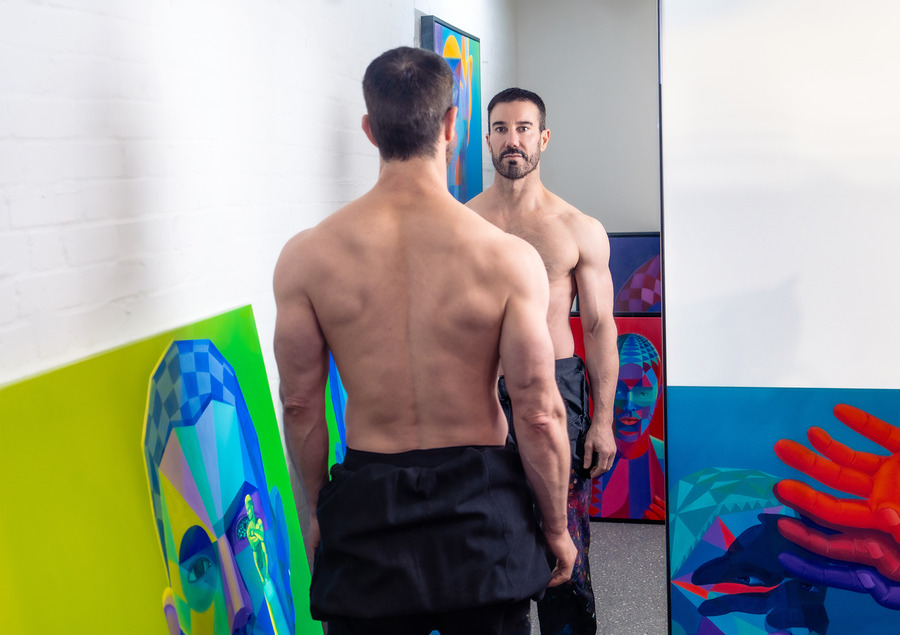 Identity isn’t something the average person thinks about. They accept what society tells them they are. Being a queer artist and someone who lives in a country different to where I was raised – the concept of identity is more salient for me. From a young age, I had to cast a critical eye on the identity others wanted for me. I was forced to decide whether I cared more about making others comfortable or being true to myself. I’m particularly fascinated by the dissonance between who we are versus who we present to the world in different contexts. We’re all multi-layered beings with contradictions and complexities, and art is my way of exploring and shining a light on these ideas.