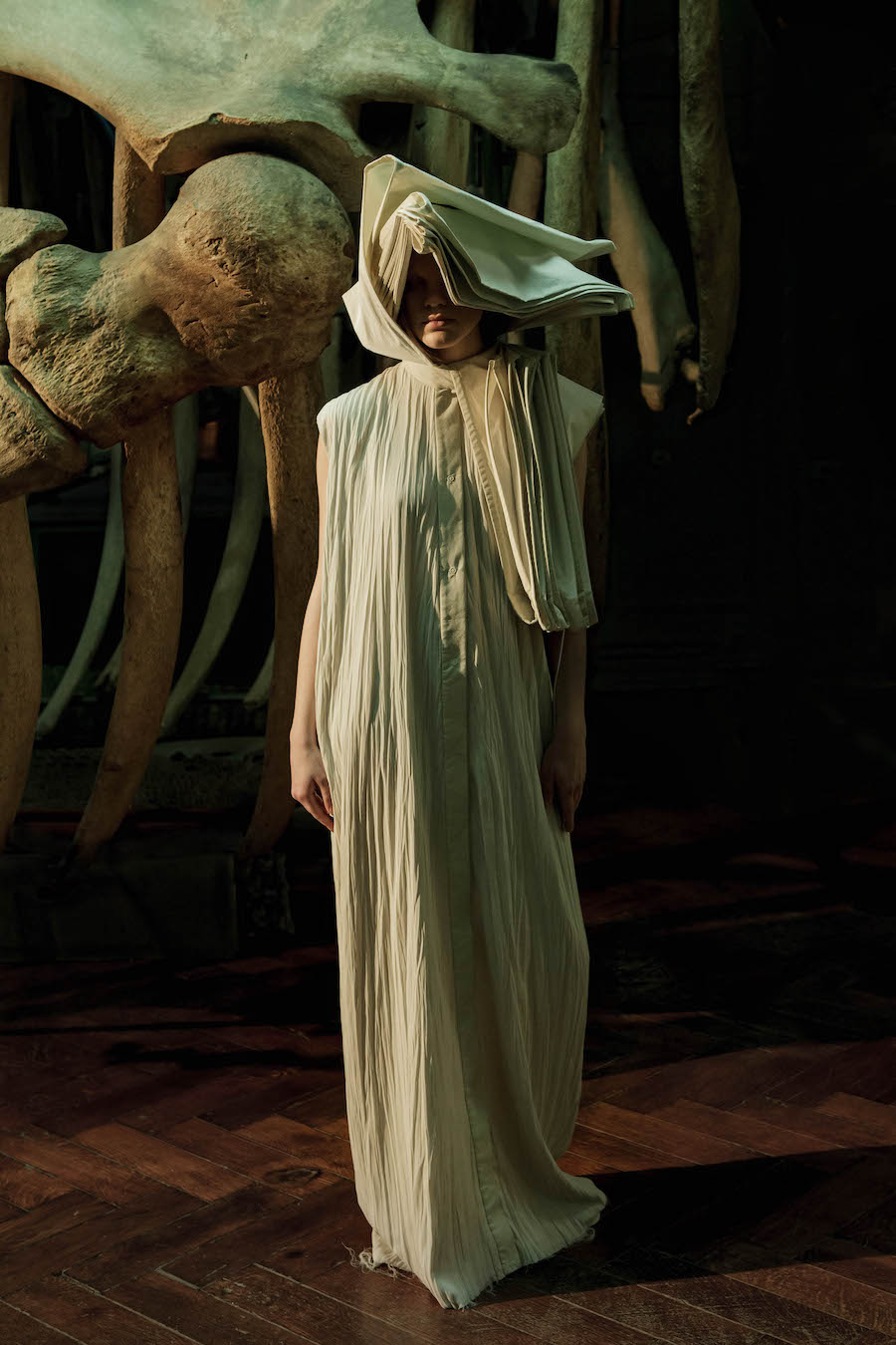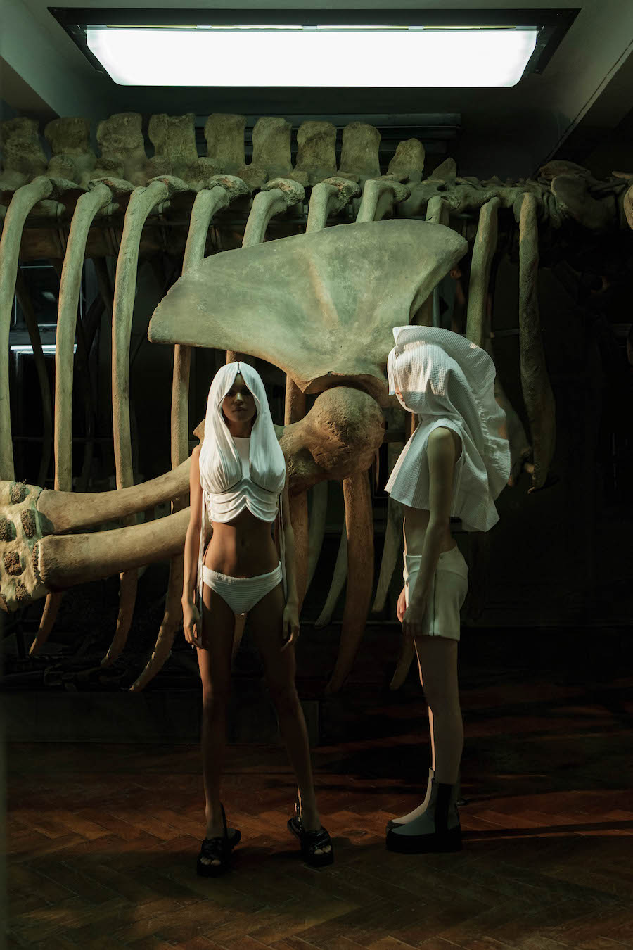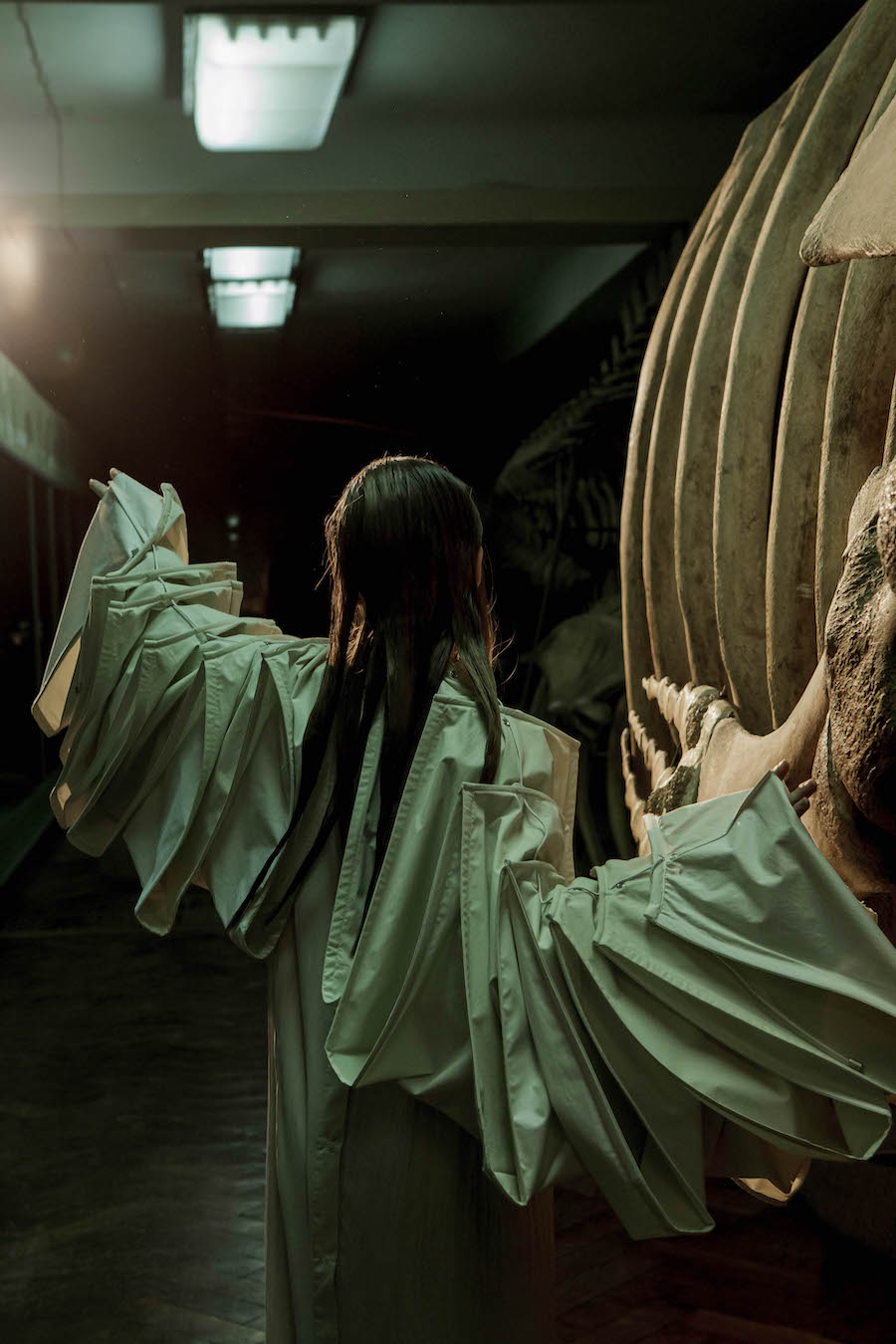 The special fashion story, consisting of a photo series and a short film, was created by a team of Ukrainian artists in the space of Kharkiv State Natural History Museum, involving DZHUS ethical transformer outfits, Lada Legina 3D-printed jewellery and House Martin cruelty-free footwear.