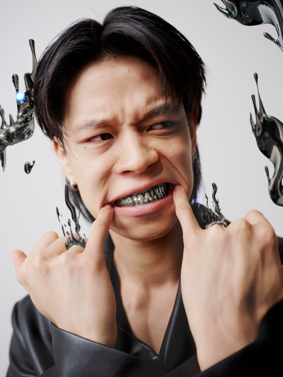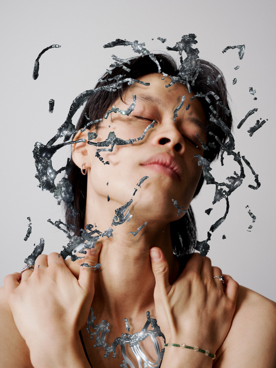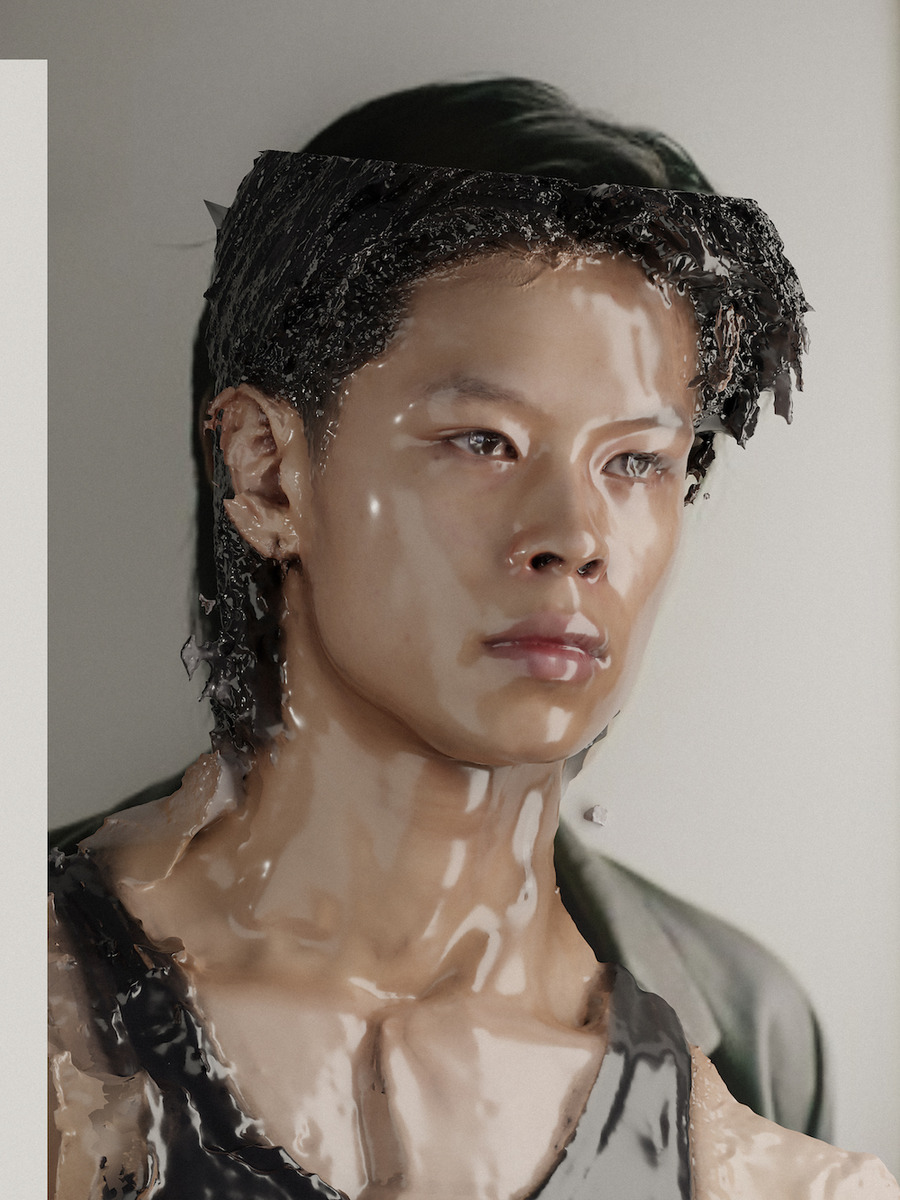 A KALTBLUT exclusive. Photography by Birk Alisch. The model is Haz Lou signed at Modelwerk. 3D & Art Direction by Noah Osarenren. „Faces, Phases & Metal Magma“ came about as a personal project of Birk Alisch and Noah Osarenren as their first attempt to fuse their respective work methods and distinct mediums.