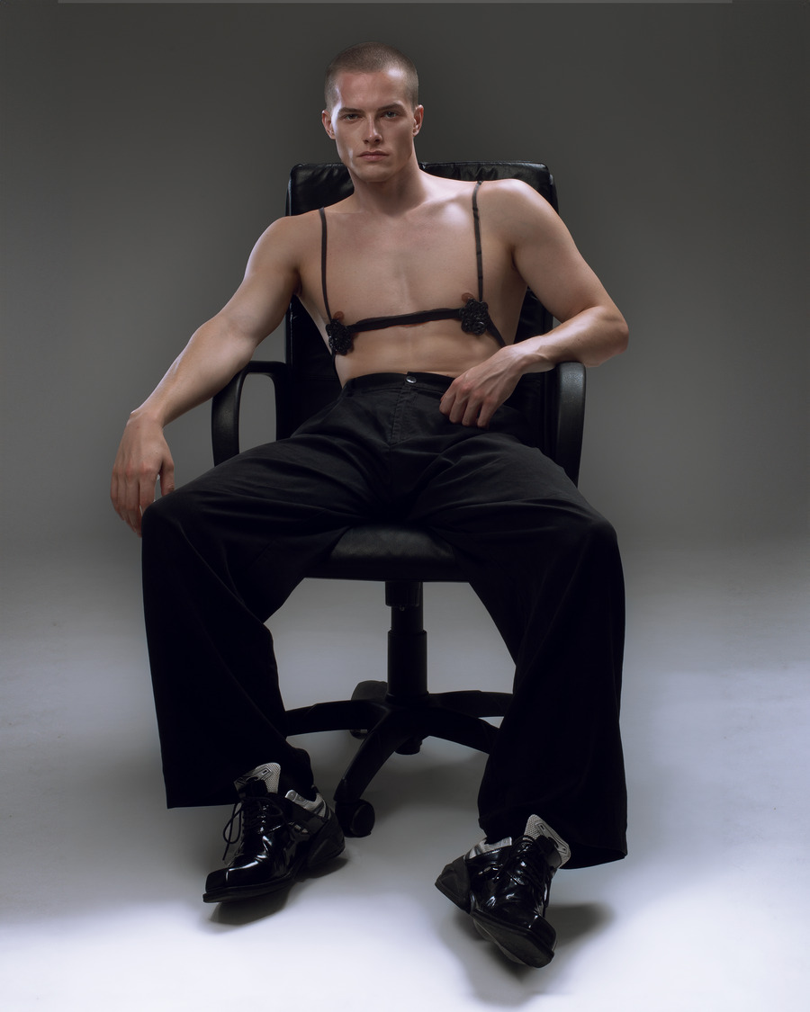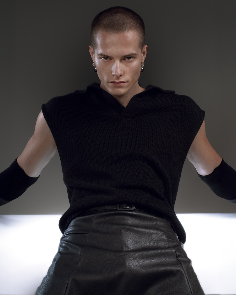 A KALTBLUT exclusive. Photography by Michele Arrabito. Creative Direction and Styling by Alessandra Lomaistro. The model is David Lacsni from Guys Mgmt. Makeup by Gaia Neri. Fashion by Lorenzo Seghezzi, Puntozero, Dennj, Nodress, MM6 Maison Margiela, Remagine Studio, Marni, Rick Owens.