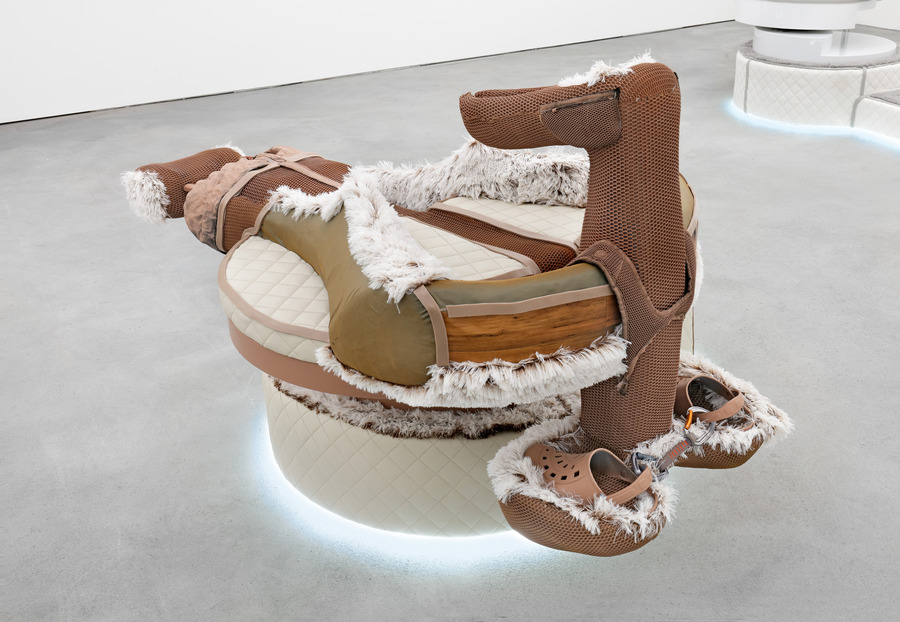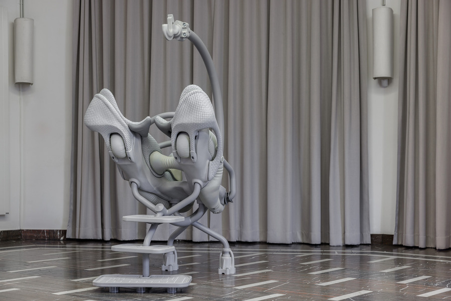Uddenberg has developed a new series of “usable” sculptures for the glassed exhibition space on the upper floor, which are loosely arranged in the room. Occasionally a group of baby-esque performers activate the ergonomic sculptures by posing in and around them. The addition of performance extends Uddenberg’s work along with her artistic research of how objects, through their function, gain control over the subjects who use them.
