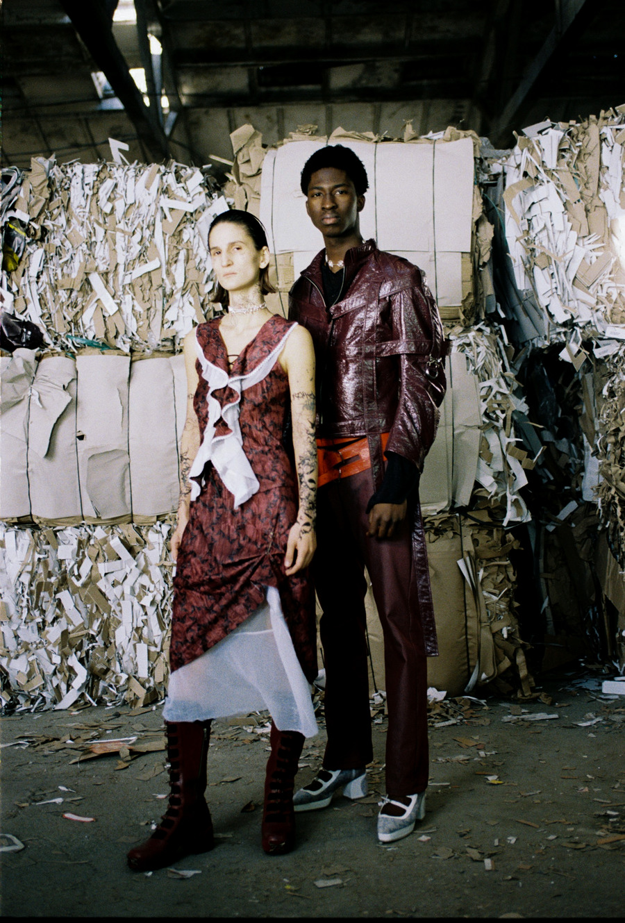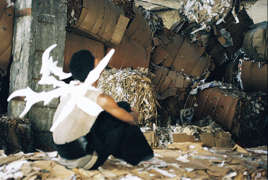 Editorial imagines characters as ethereal beings wandering around in a paper recycling factory on the outskirts of Tbilisi, it symbolizes the yearning for rejuvenation and the profound beauty inherent in the cyclical nature of existence, represented in the space full of contradictions.