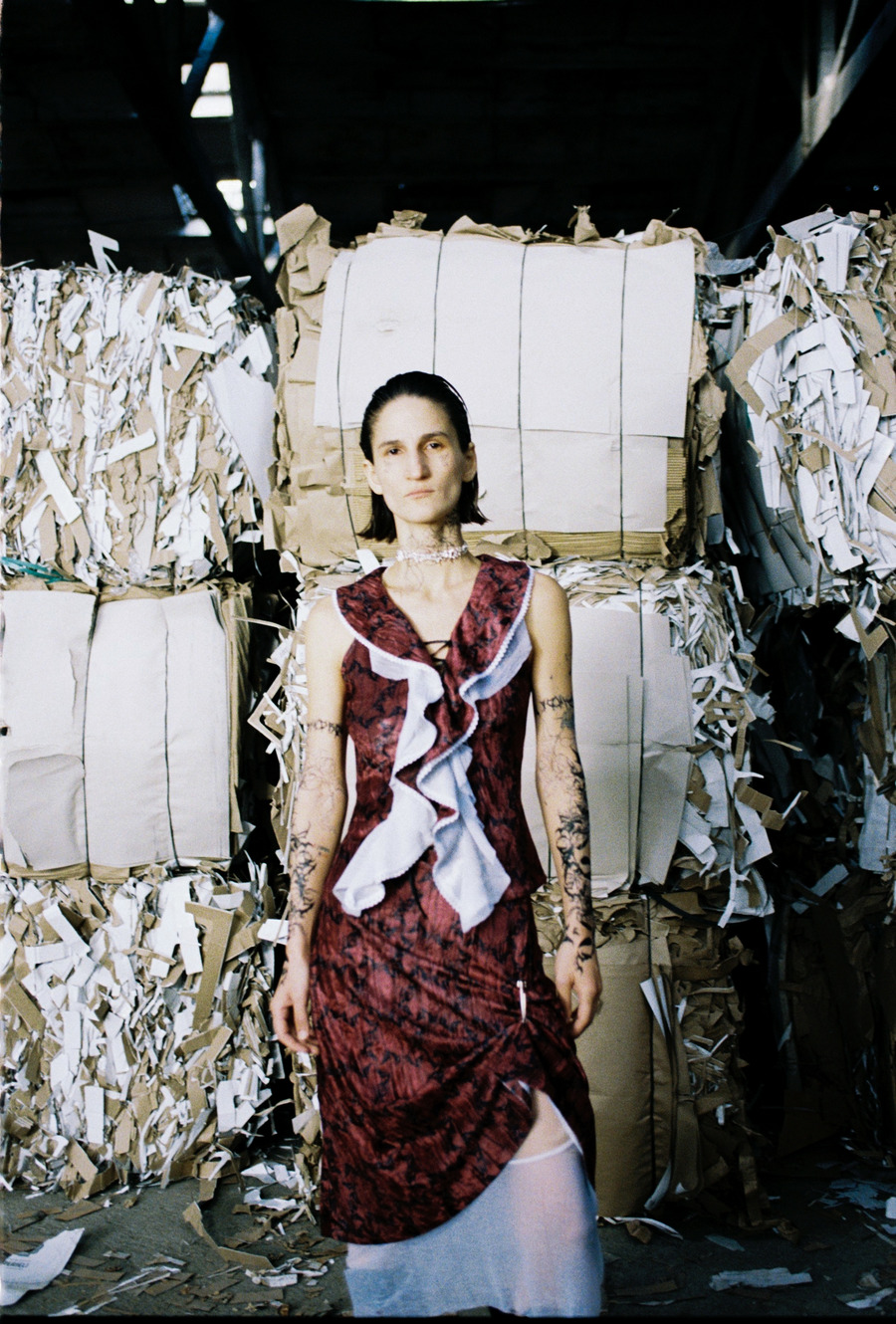 The “Fallen Angels,” editorial showcases the up-cycled, sustainable pieces from the emerging fashion brand, SYNDROM, created and based in Tbilisi.