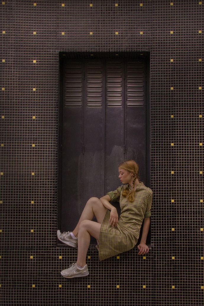 A KALTBLUT exclusive womenswear fashion editorial.Photography and styling by Romain Prochain. Make-up by Claverie Benoit. Model is Coline Blaise. The shooting took place in Montreuil (France). Fashion by Mad Vintage, Free’P’Star, Hippy Market, Honey Punch and others.