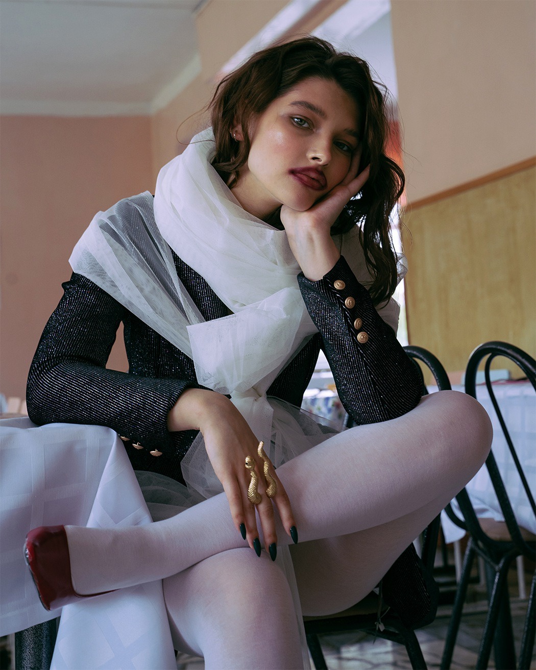 A KALTBLUT exclusive womenswear editorial. Photography by Nadia Usoltseva. Style by Evgeniya Zhuravlyova. Model is Yana Lysenko. Makeup by Shahrizat Magomedova.