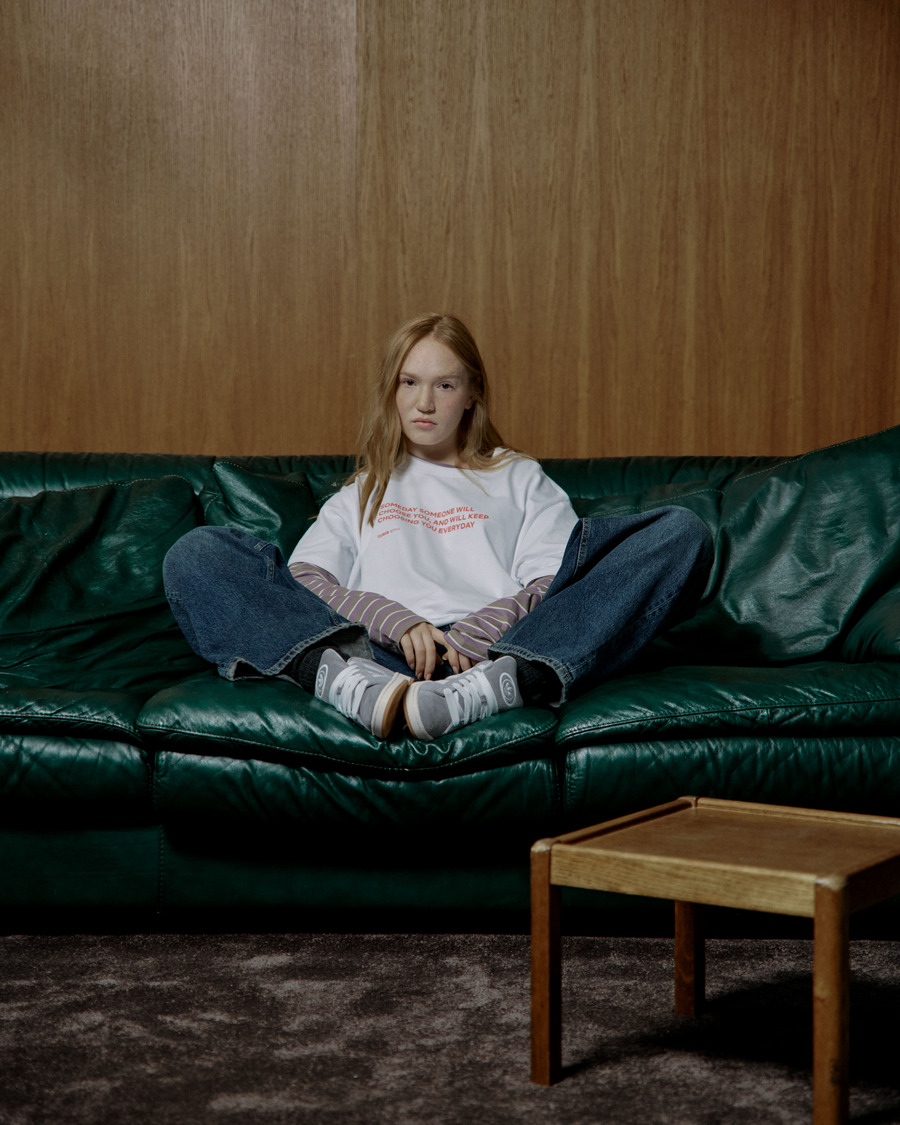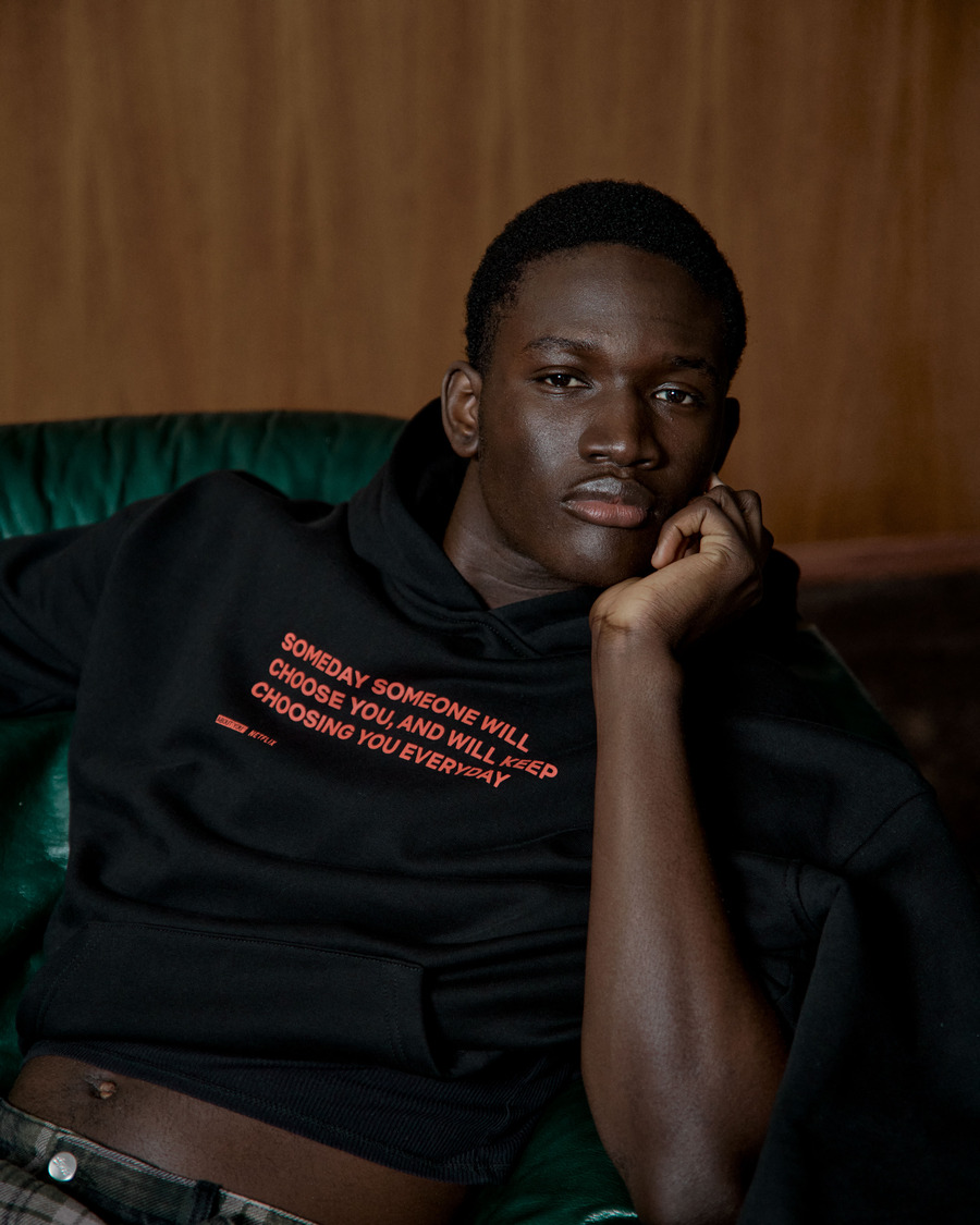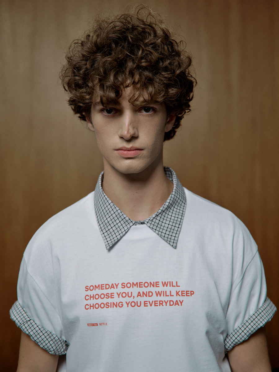 At the heart of this limited selection is one of the most iconic quotes from the beloved series “Sex Education”: “SOMEDAY SOMEONE WILL CHOOSE YOU, AND WILL KEEP CHOOSING YOU EVERY DAY.” This powerful statement is accompanied by the logos of the two collaborators: ABOUT YOU and Netflix.