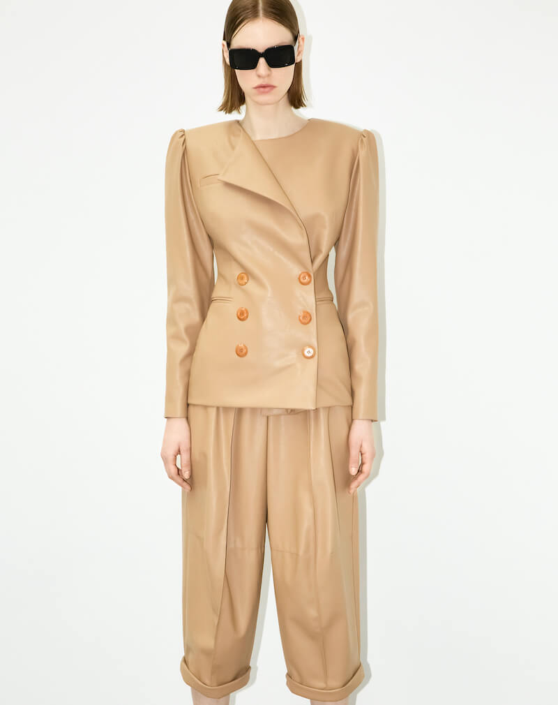 Alexandre Akhalkatsishvili is never afraid to work with leather-like textures, proving them to be a legitimate part of an elegant wardrobe. With tailored silhouettes and natural fabrics, his pieces are designed to be one’s top style pick for many years.
