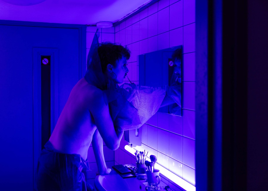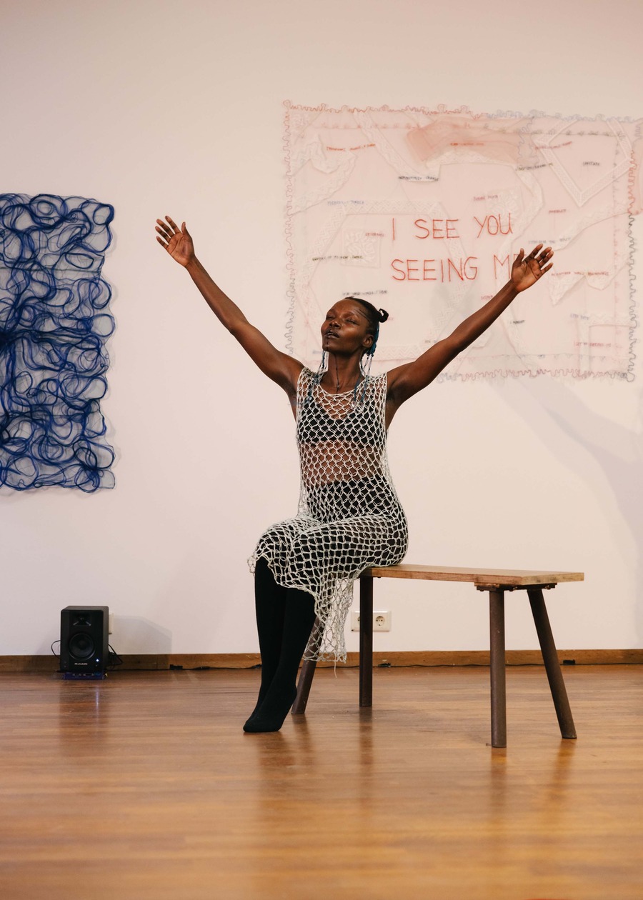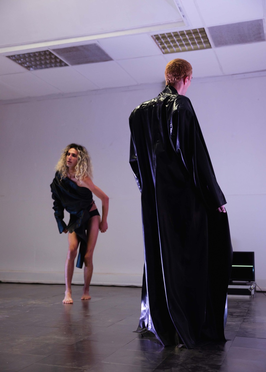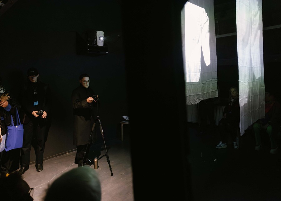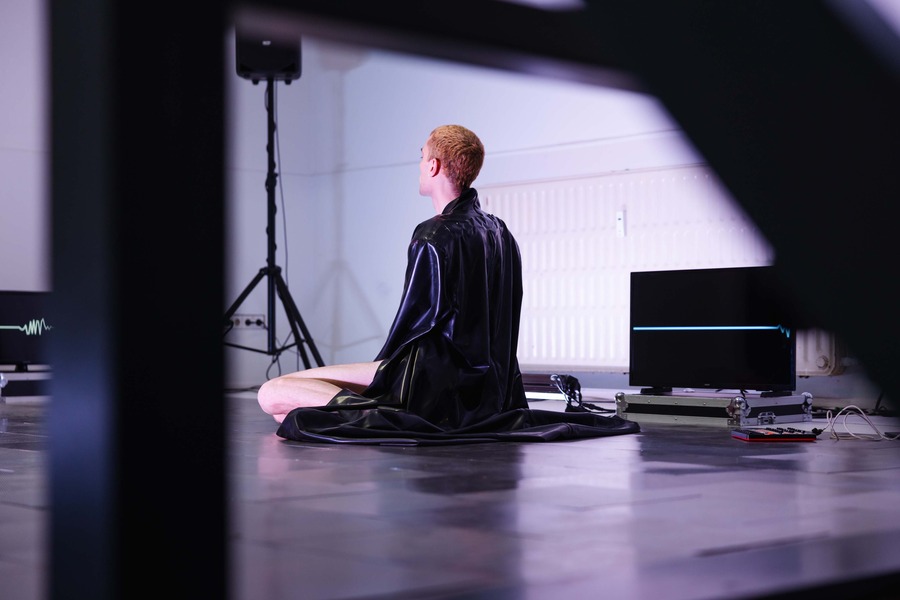The collaboration ULKAAN, featuring Kaan Hiçyilmaz and Ulkuhan Akgul, presented their installation ‘cid’ at Mariastraat 13 over the three-day festival. With the activation of the installation by performers Famil Zaman and Aidan Bay, this groundbreaking work disrupted conventional identity classifications through the fusion of fashion and digital technology. Their approach portrayed fashion as a powerful plea for self-expression, freeing individuals from rigid identity constructs.