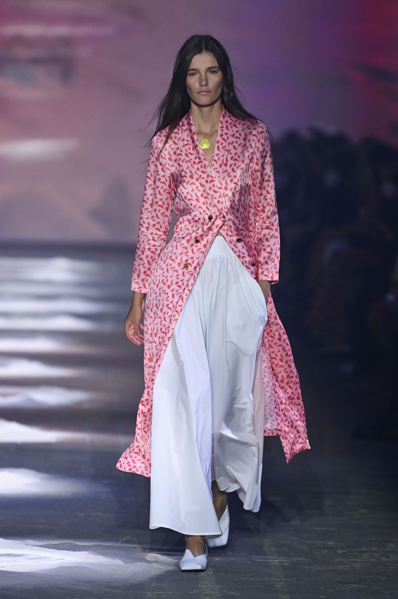 The 29 looks show the colors of the Mediterranean in bright blue and coral tones, which are inspired by the paintings by Carolanna Parlatos and Sarah Crowners; and the Spanish desert is reflected in the natural sand tones. Together with the Galician artist Maria Josefa Sanchez Castedo, Fassbender presents for the first time jewelry that celebrates the craftsmanship of Spain. The floral necklaces and bracelets, based on the fauna of the Mediterranean region, are delicate and expressive at the same time. The classic wardrobe is complemented this season with playful summer dresses that capture Ibiza’s zest for life.