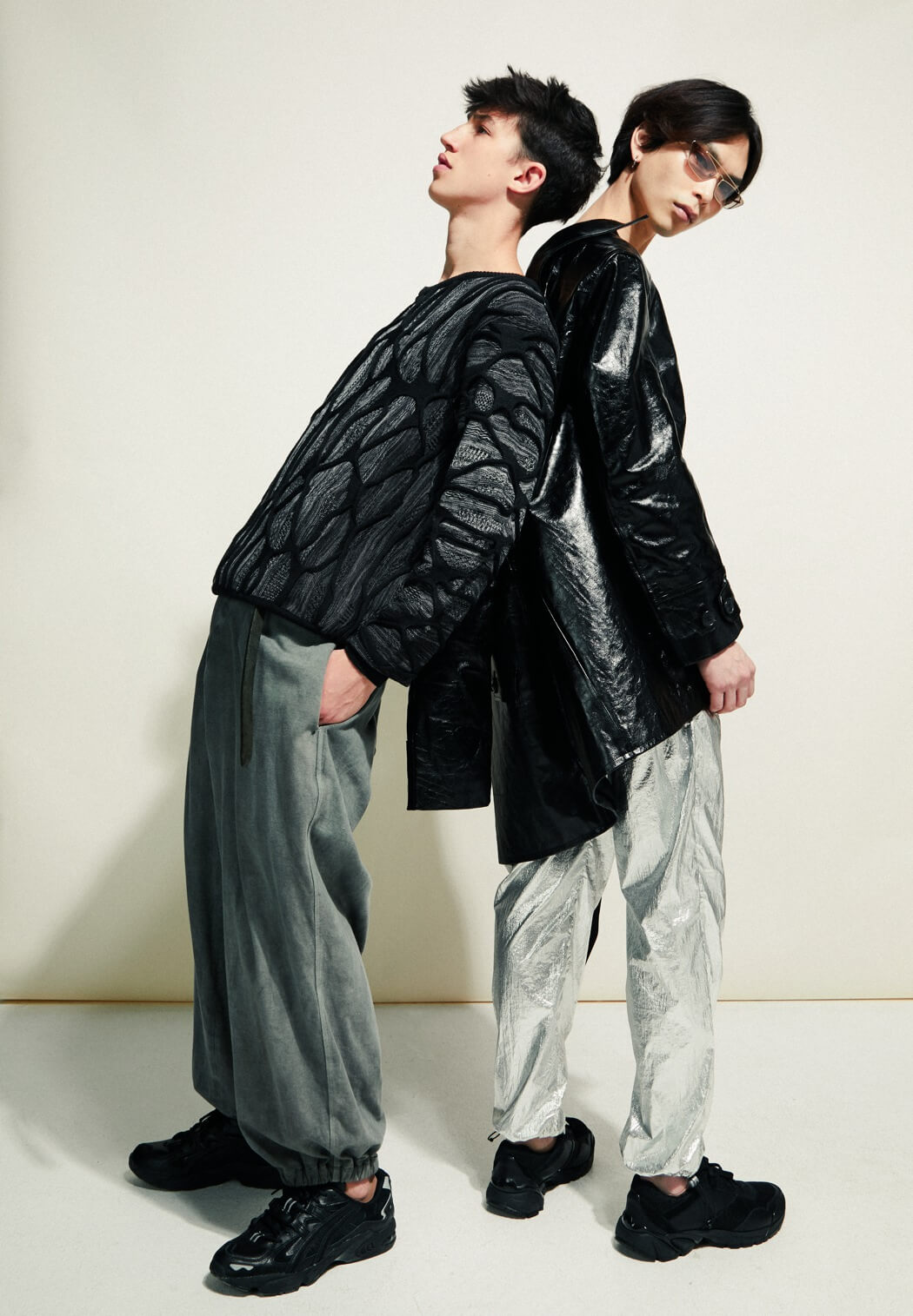 A KALTBLUT exclusive menswear editorial. Photography by Jakob Reimann. Models are Fausto Sylvester and Fiwoo Kim at Viva Models Berlin. Styled by David Herrera using fashion by 032c, Carhartt, Our Legacy, Oakley x Samuel Ross, Jil Sander, Y-3, Yohji Yamamoto.