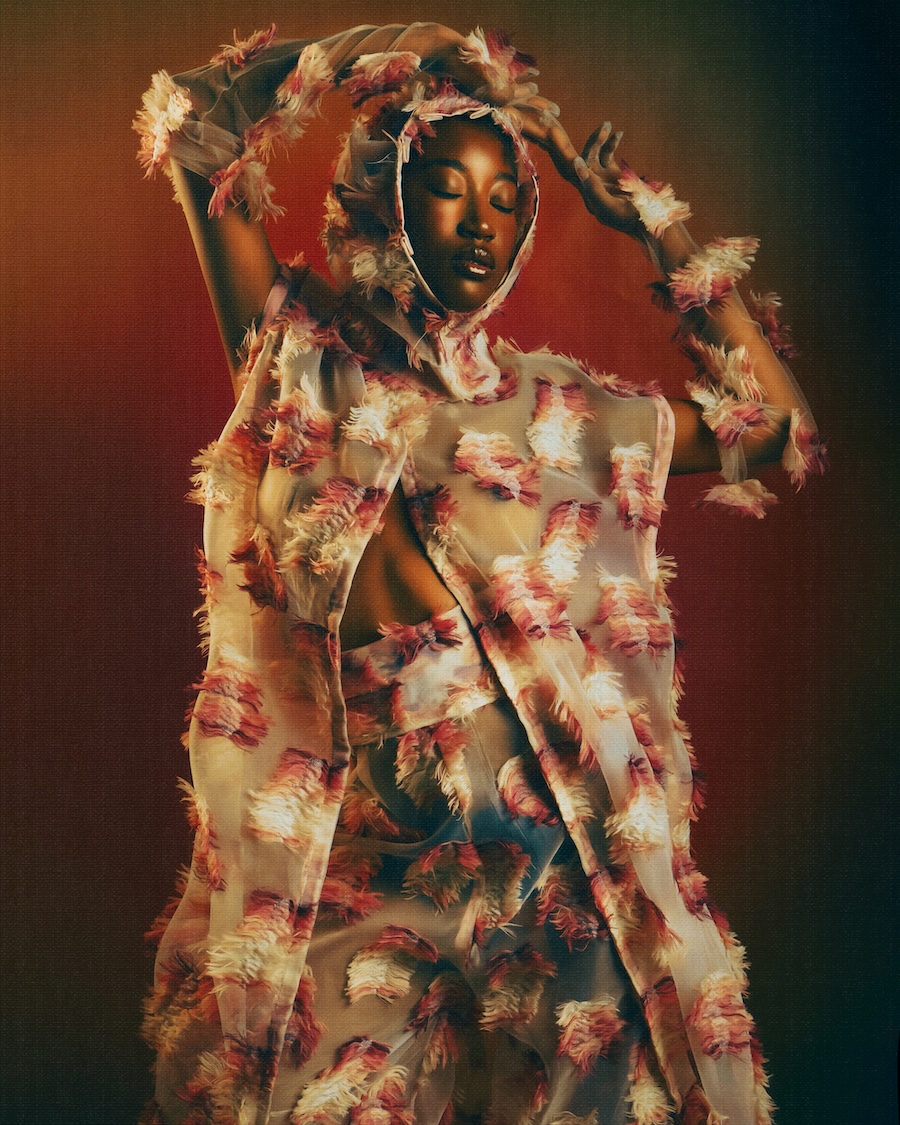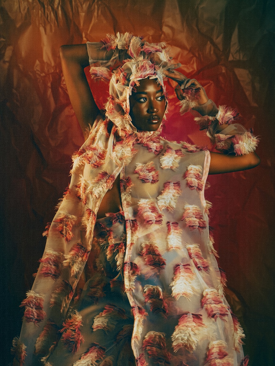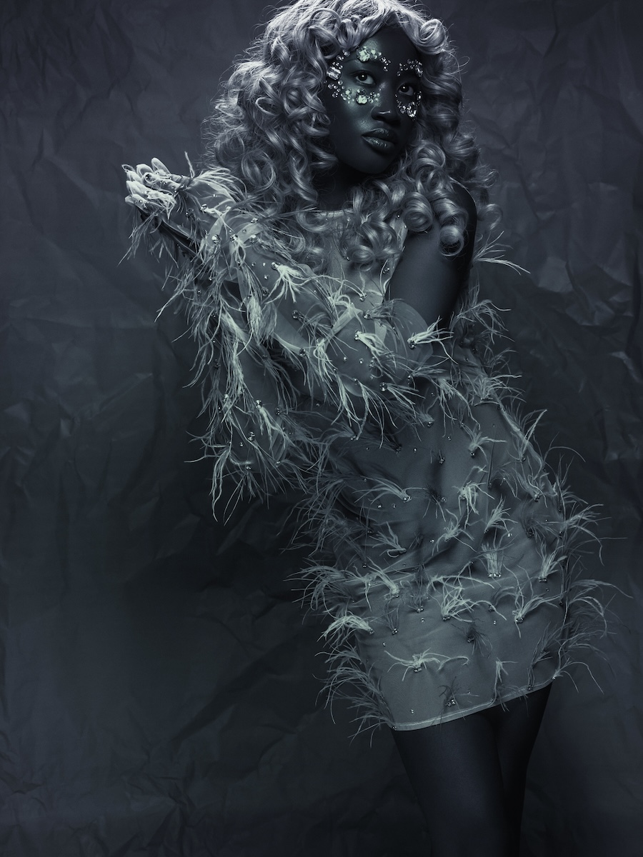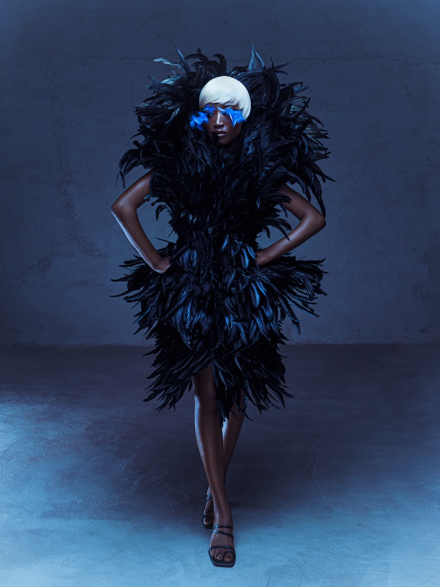 A KALTBLUT exclusive editorial. Photography by Gaex Guarin. The model is Leila Savadogo. Art direction by Davide Marfella. Styling by Costanzo Cataldo using fashion by Salvatore Crisciello. Makeup by Roberta Di Pietro. A journey into three dimensions of femininity, reinvented as power, dream, and transformation. Feathers are not mere ornaments; they become armour, veils, storms. They are lightness and strength at once, symbols of freedom that escape classical codes and transform into language.