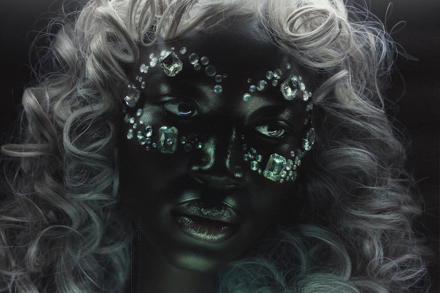 She is the enigmatic sovereign, ruling over darkness with impenetrable elegance. The Celestial Visionary walks in a sheer gown, encrusted with white feathers and crystals.