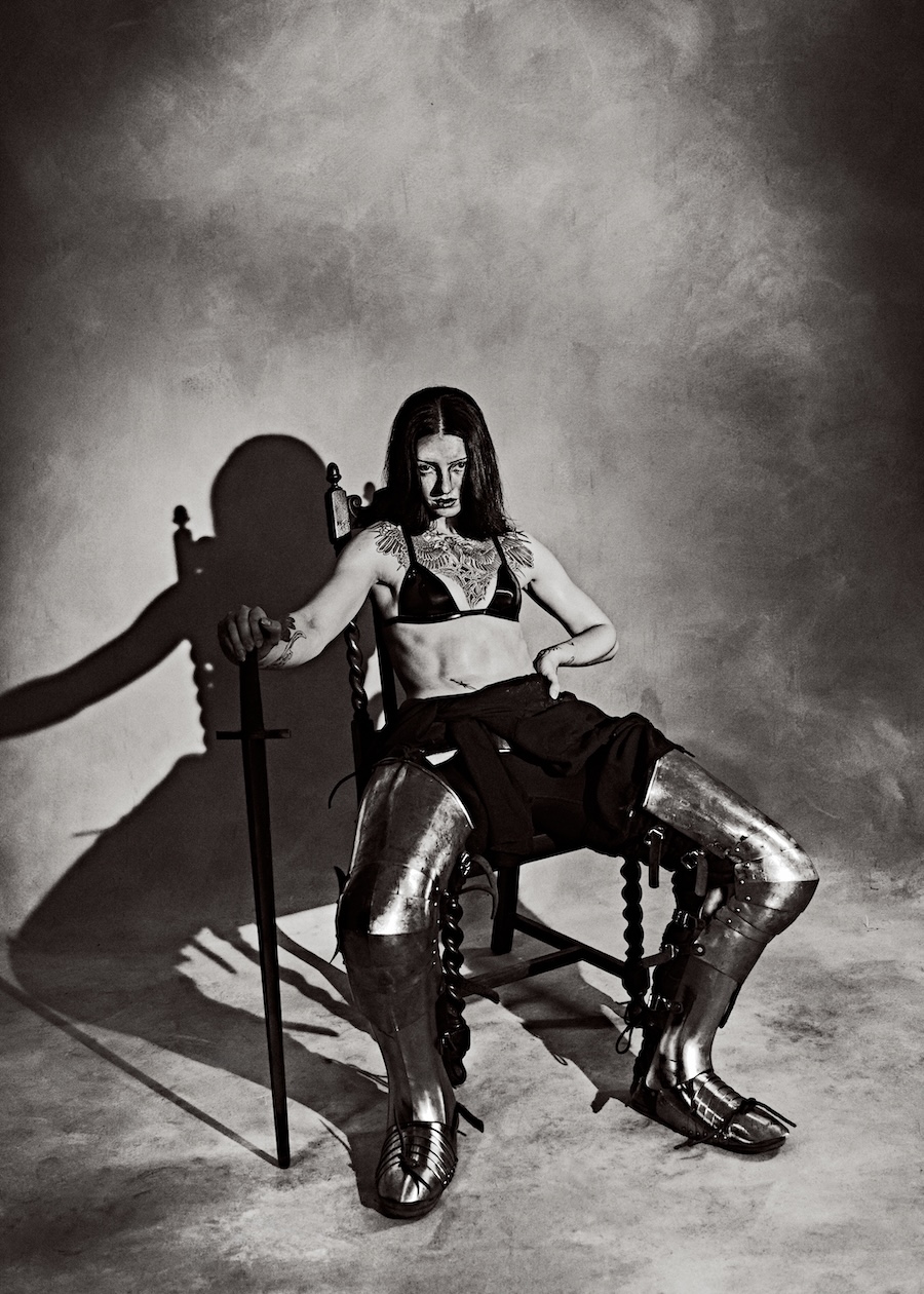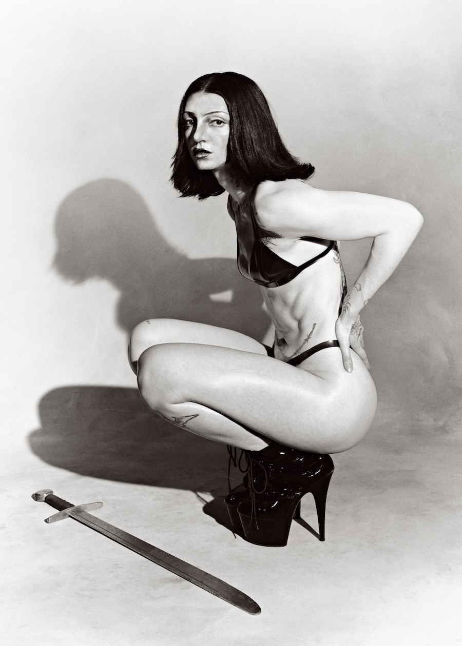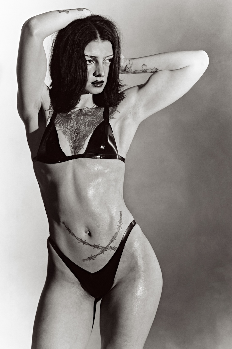 A KALTBLUT exclusive. Photography & Art Direction by Stefano Della Salda. The model is Annika Victoria Alexander. Makeup by Roo. Hand-painted backdrop by Matthew Lawrence. The brand used is Elissa Poppy. Stefano Della Salda is an Italian Photographer who explores visuals through an alternative, grotesque idea of beauty, the unusual and the ‘out of place’. This Editorial work is based on the contrast between an authoritarian power symbology like that of an Armour, Sword & Muscles with the sensuality that Latex and Heels can offer. The blending of the two brings a statuesque state that bleeds into feminine beauty while transmitting a dominant strength and elegance.