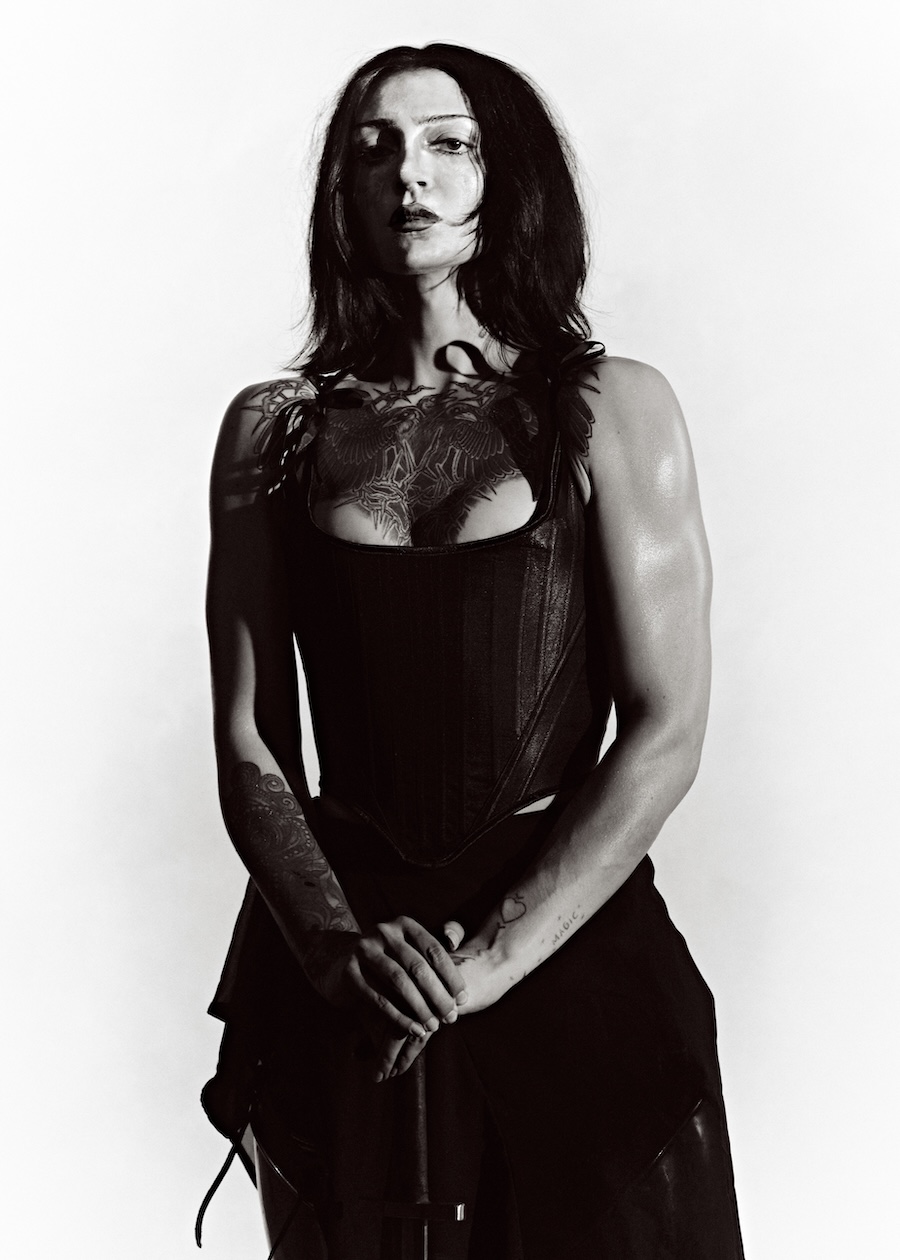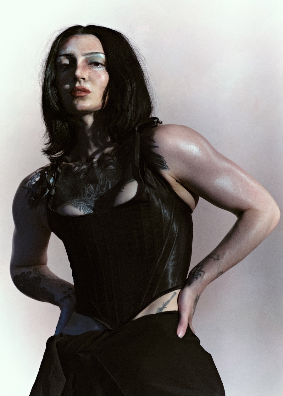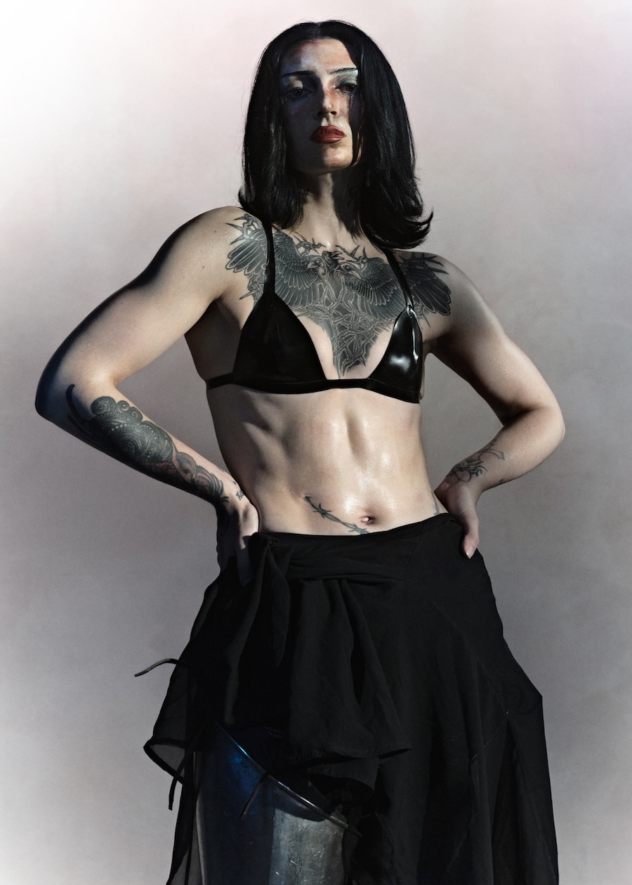 A KALTBLUT exclusive. Photography & Art Direction by Stefano Della Salda. The model is Annika Victoria Alexander. Makeup by Roo. Hand-painted backdrop by Matthew Lawrence. The brand used is Elissa Poppy. Stefano Della Salda is an Italian Photographer who explores visuals through an alternative, grotesque idea of beauty, the unusual and the ‘out of place’. This Editorial work is based on the contrast between an authoritarian power symbology like that of an Armour, Sword & Muscles with the sensuality that Latex and Heels can offer. The blending of the two brings a statuesque state that bleeds into feminine beauty while transmitting a dominant strength and elegance.