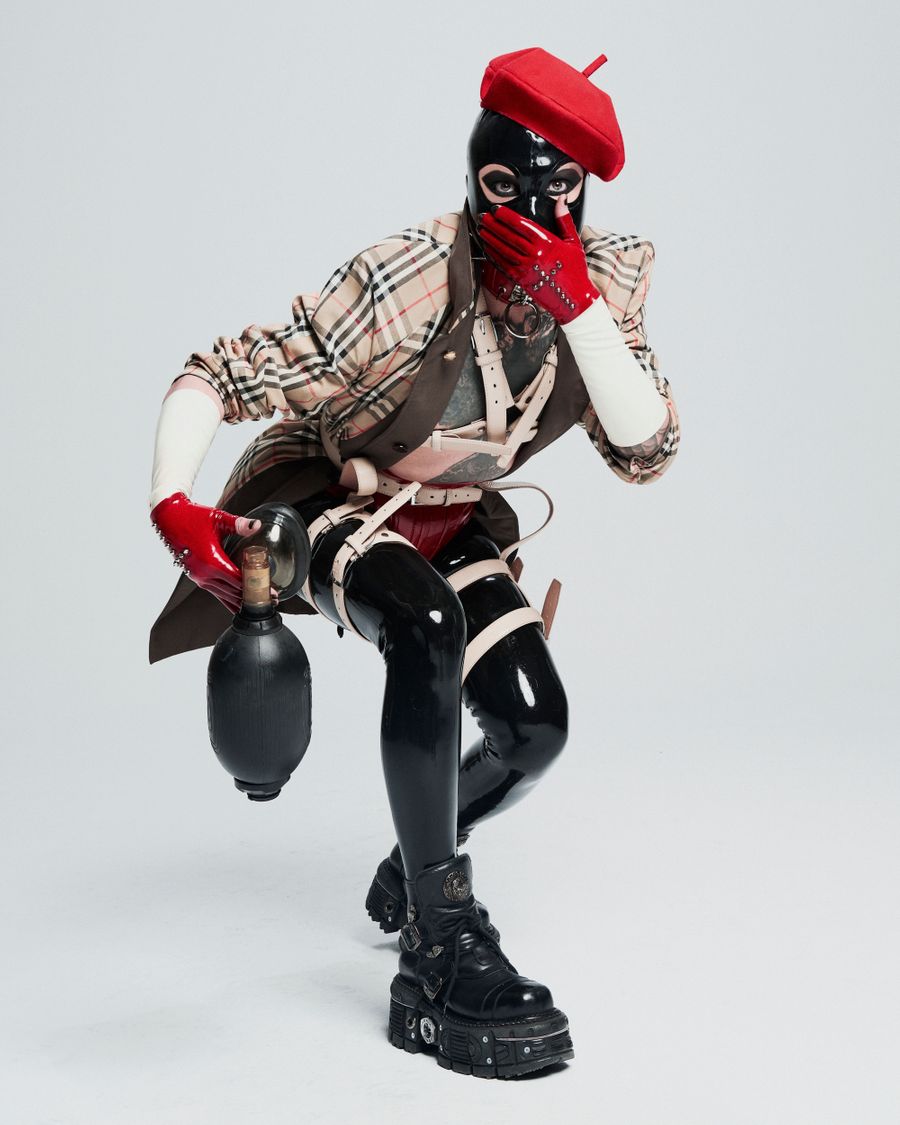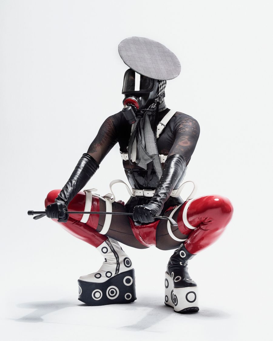 A KALTBLUT exclusive editorial about fashion, fetish and fantasy. Madrid-based photographer Jaime Sánchez captured the international fetish and grotesque performer Marcopunk for us. Photography assistant Héctor Fraile. Styling by Marcopunk.
