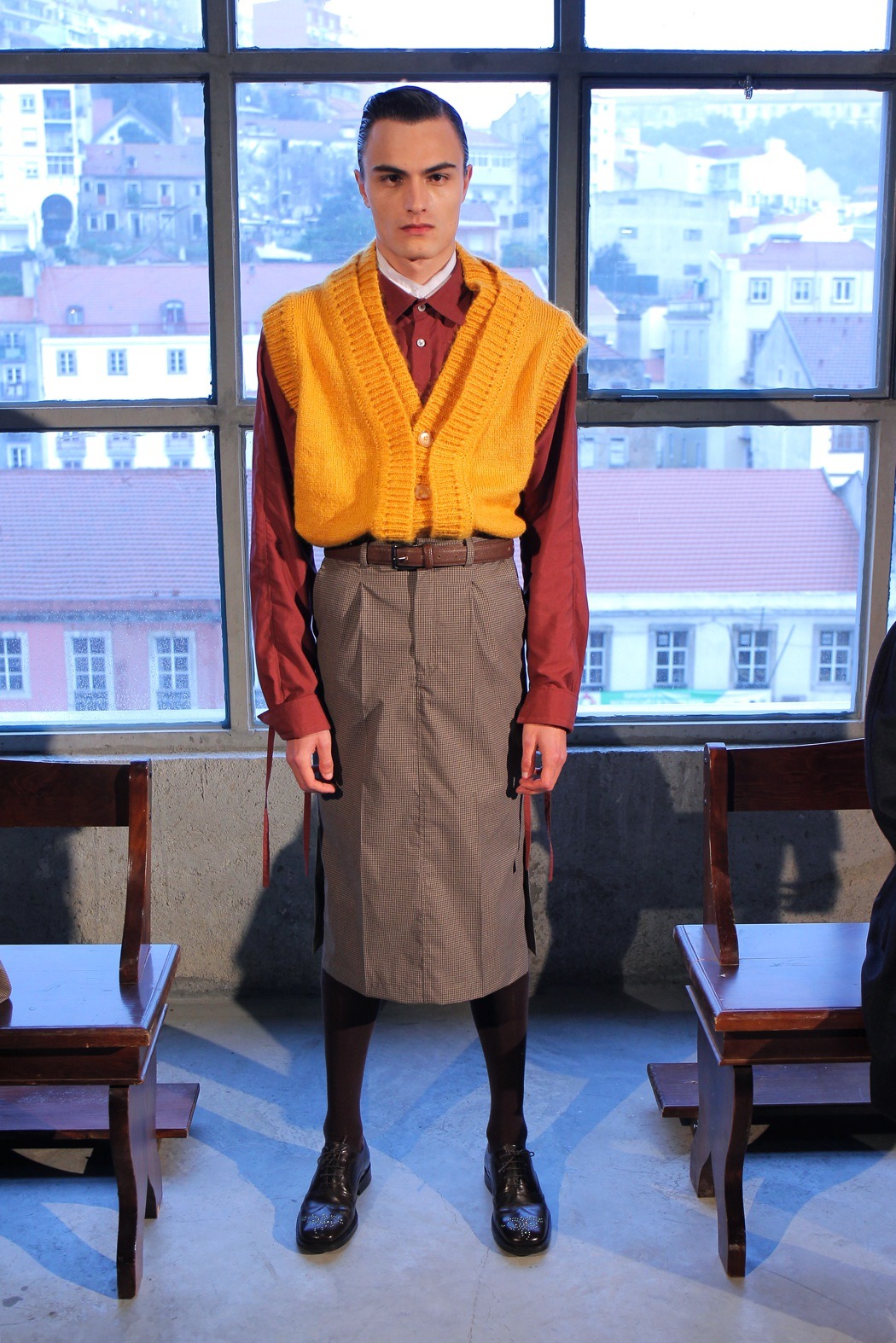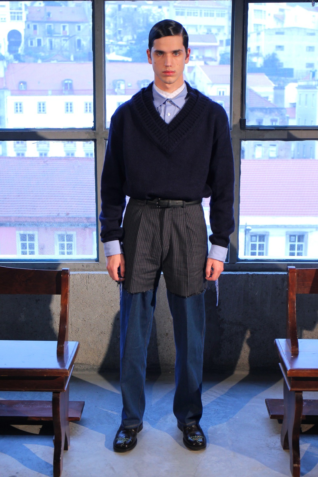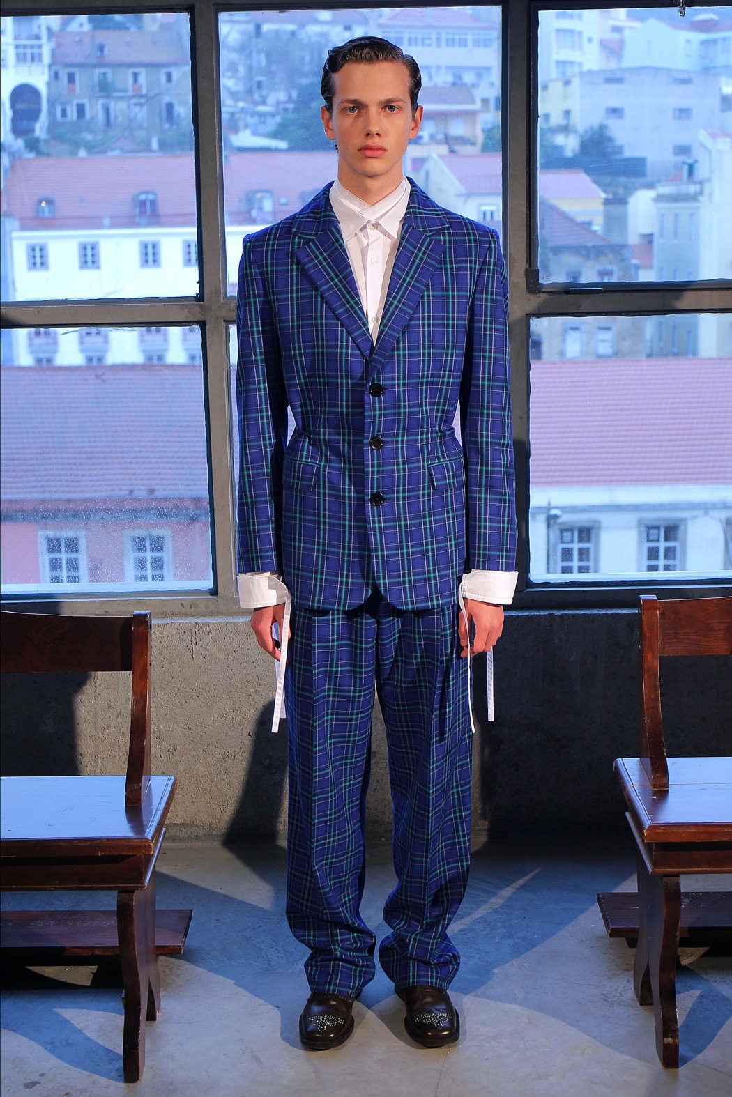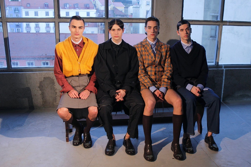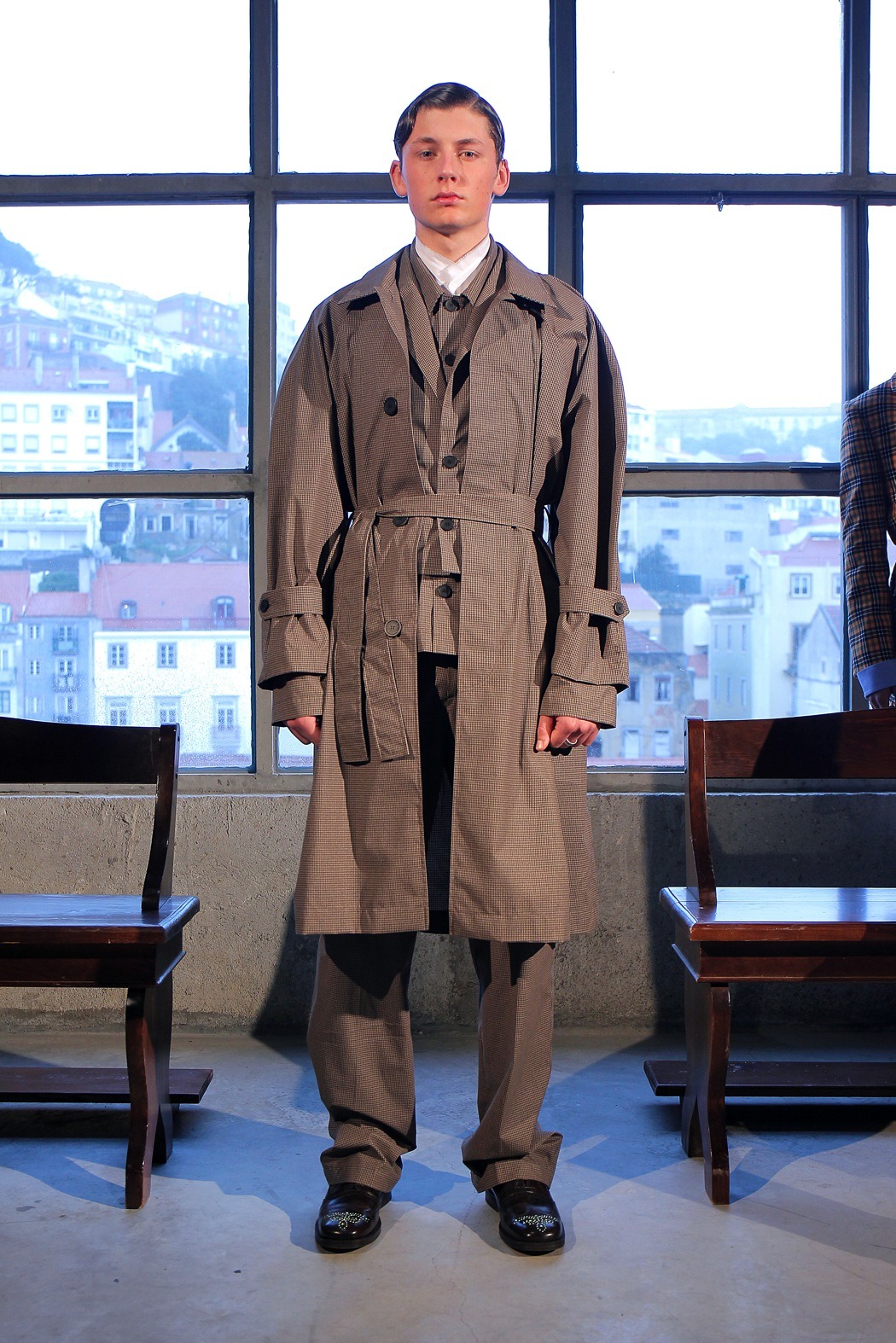 #ModaLisboa – INSIGHT – THE WORKSTATION! Young menswear designer Filipe Augusto unveiled his new and amazing collection last week in Lisbon. “From 8 to 8 comes the one who looks best on Sunday mass. Sunday suit, with a notable crease which follows the sound of elevated bronze”