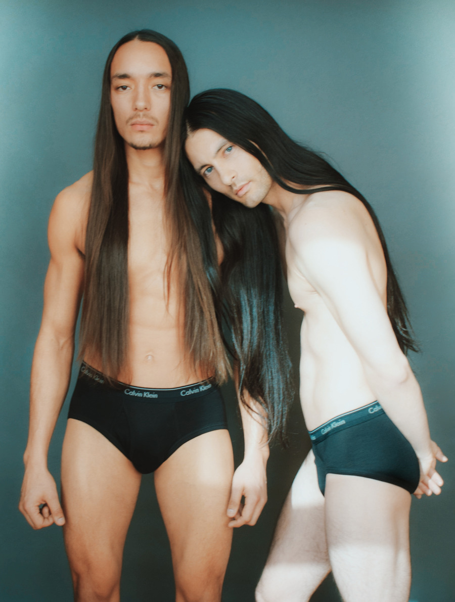 Tyler and Kenji come together in front of the lens of Elys Berroteran, for this KALTBLUT exclusive story that talks about inner art transmitted in photographs of union and versatility, As their main outfits they are wearing Calvin Klein’s latest slim fit collection.