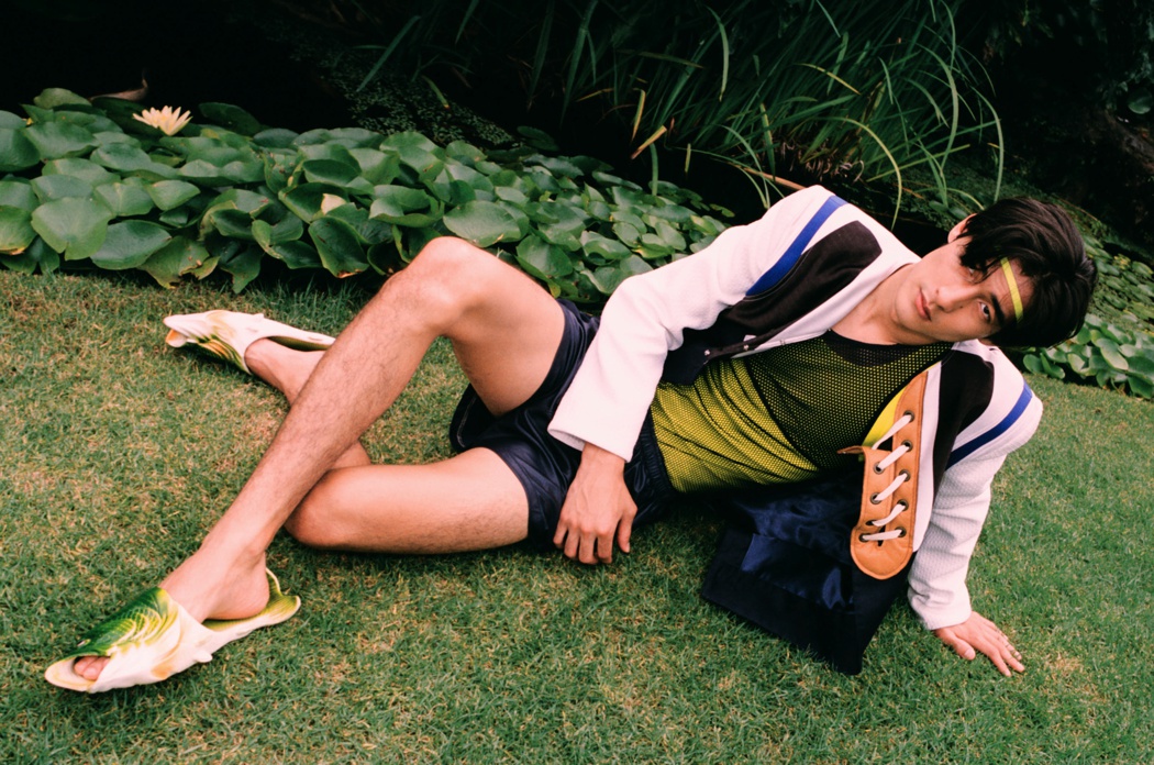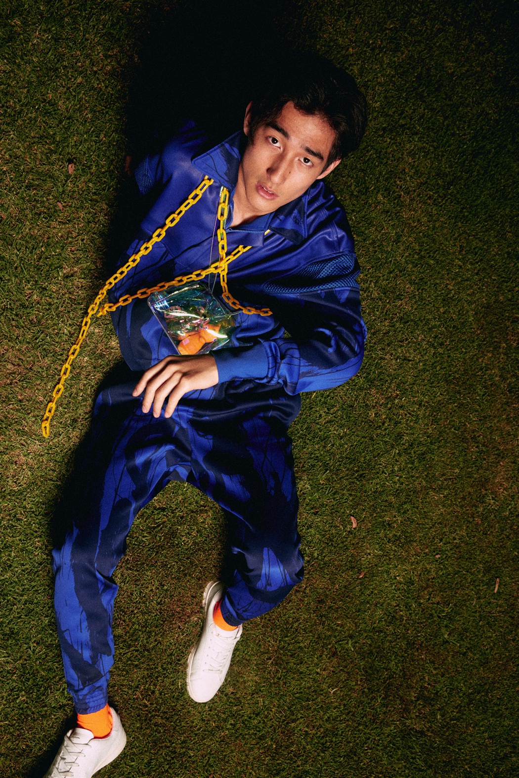 Kevin wears: Chris Ran Lin jacket, Aydin Was Here top, Justin Cassin Pant, Skarfe scarf, Champion sneakers, Jaggar The Label bag.