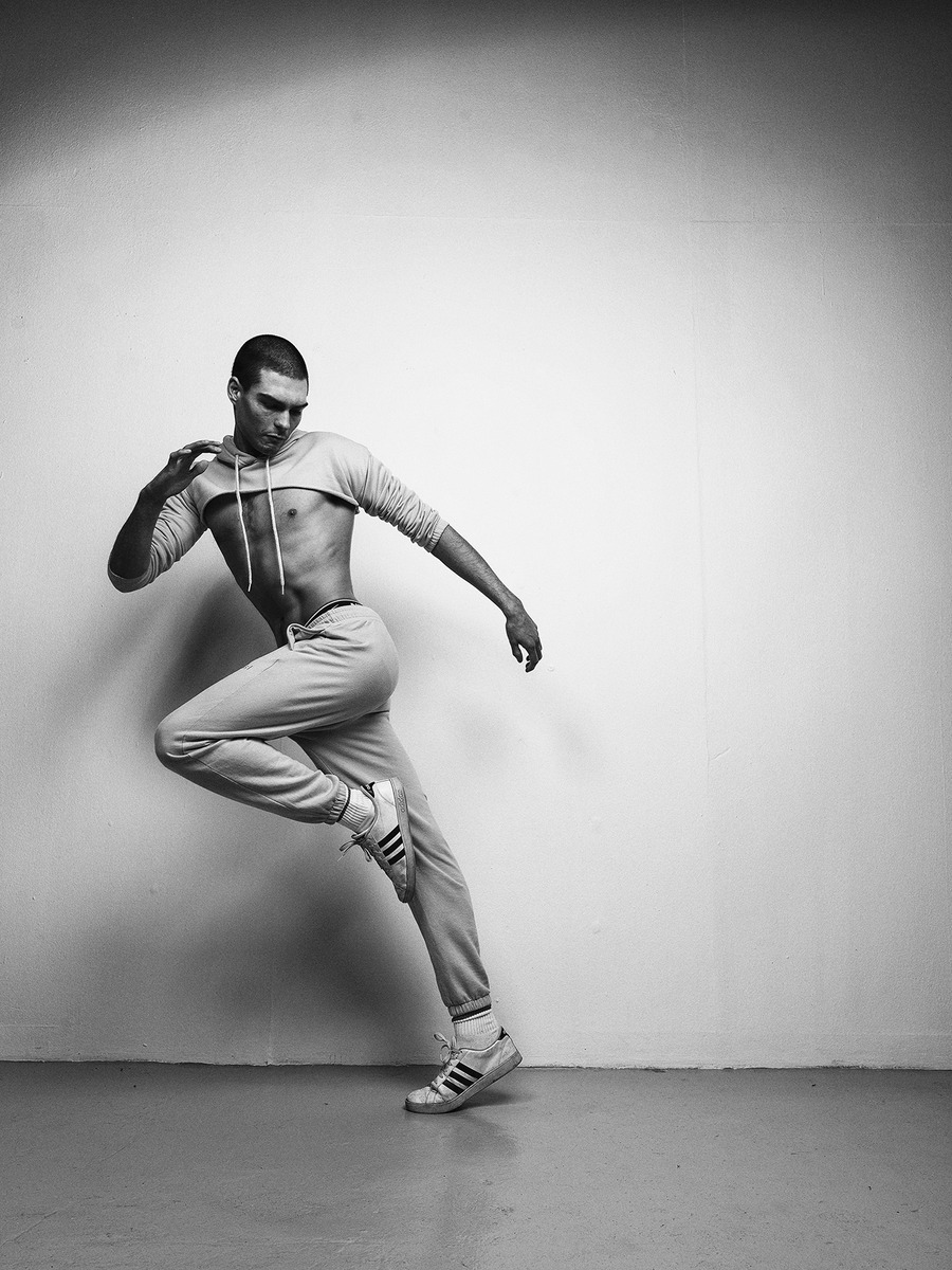 “Pretty much all male models have the same posture and it’s to show off the abs and the chest. It’s interesting to do a shoot where we can show the aesthetic of the body but also focus on the aesthetic of movement and position.”