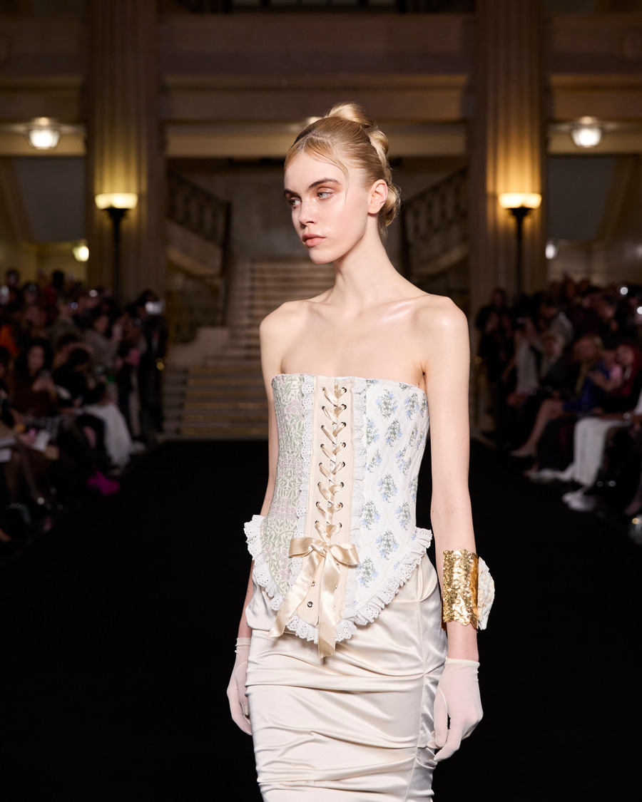 Meanwhile, ONGANG took us on a journey through time with a collection inspired by The Color of Pomegranates (the 1969 Soviet film, for those not in the know). 17th-century Baroque comedy costumes met the raw drama of theatre curtains—draped, pleated, and slashed in ways that blurred the line between clothing and performance art. The pièce de résistance? Adjustable straps that let wearers manipulate silhouettes, turning each outfit into a shape-shifting masterpiece.