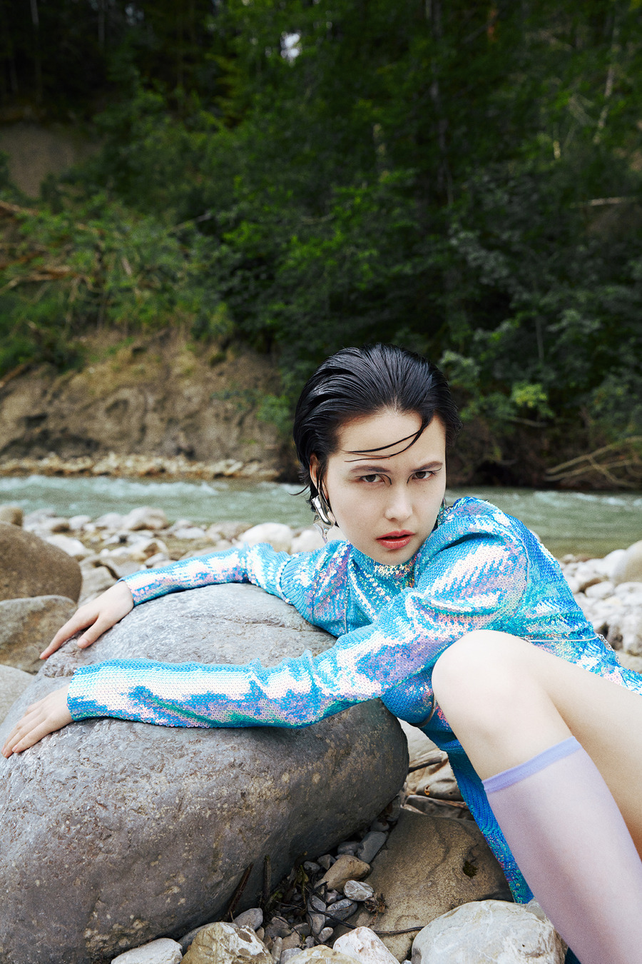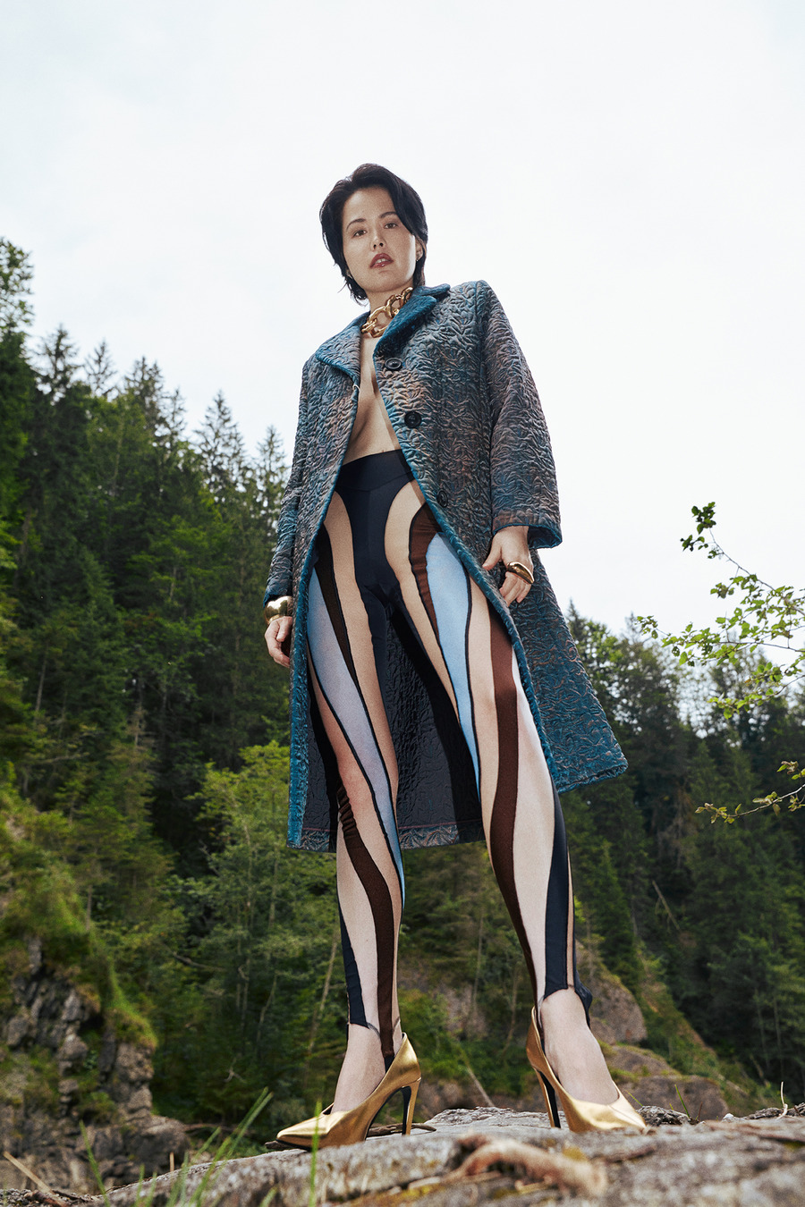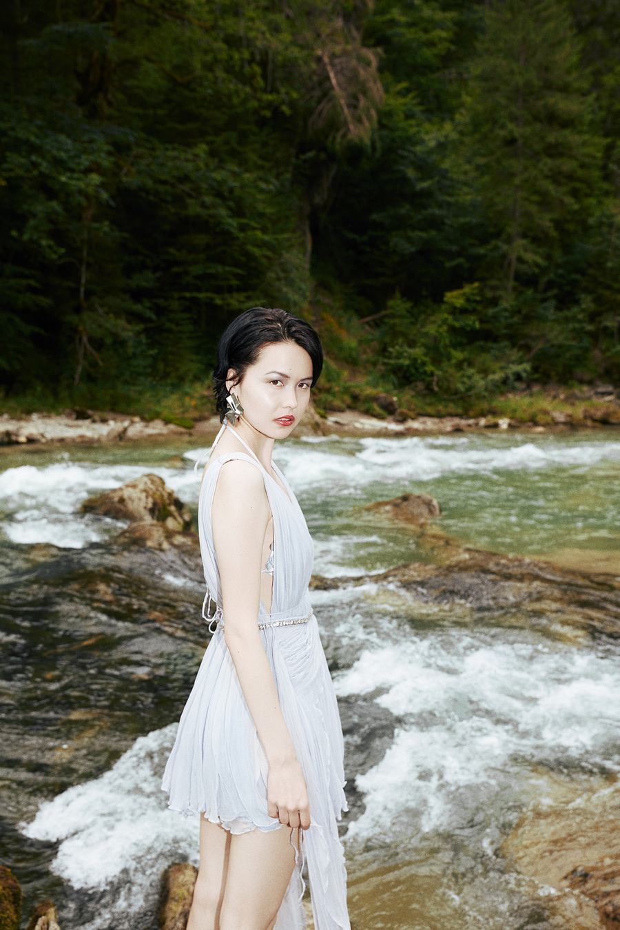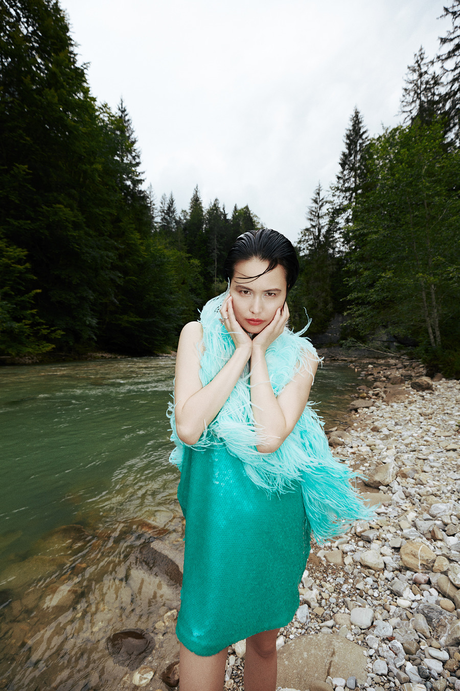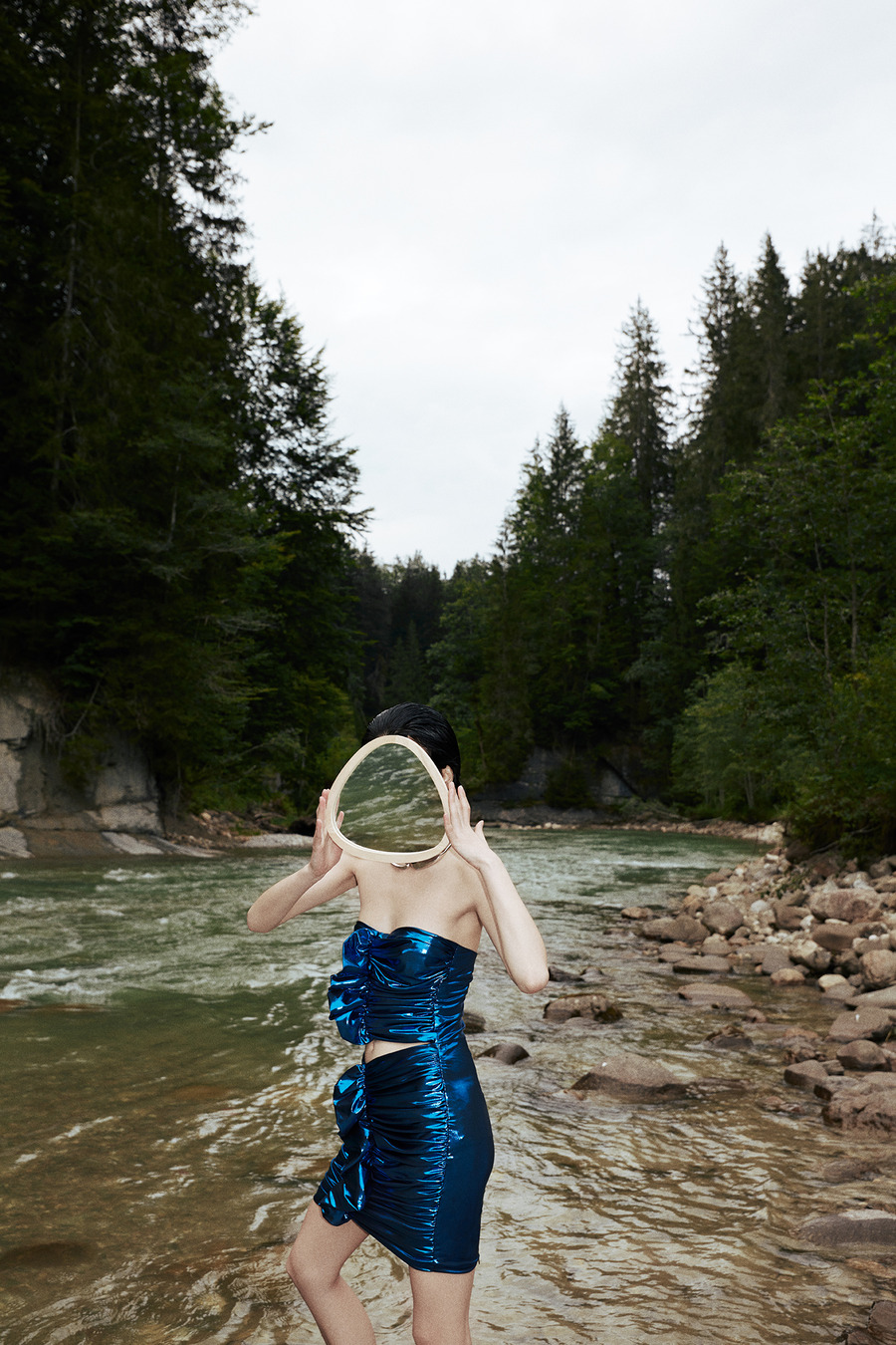 A KALTBLUT exclusive. Photography by Christine Polz. The model is Lily. Make up by Abresha Dika. Styling by Suzana Popa using Mugler, Proenza Seouler, Dries van Noten, Maison Marginal, Trussardi, Rabanne, Manuri, Miu Miu, Dolce&Gabbana, Prada, Ferragamo, Ted Baker, Bottega Veneta, Asos, The Attico, Prada, David Koma, Cult Gaia, Falke, House of Amen.