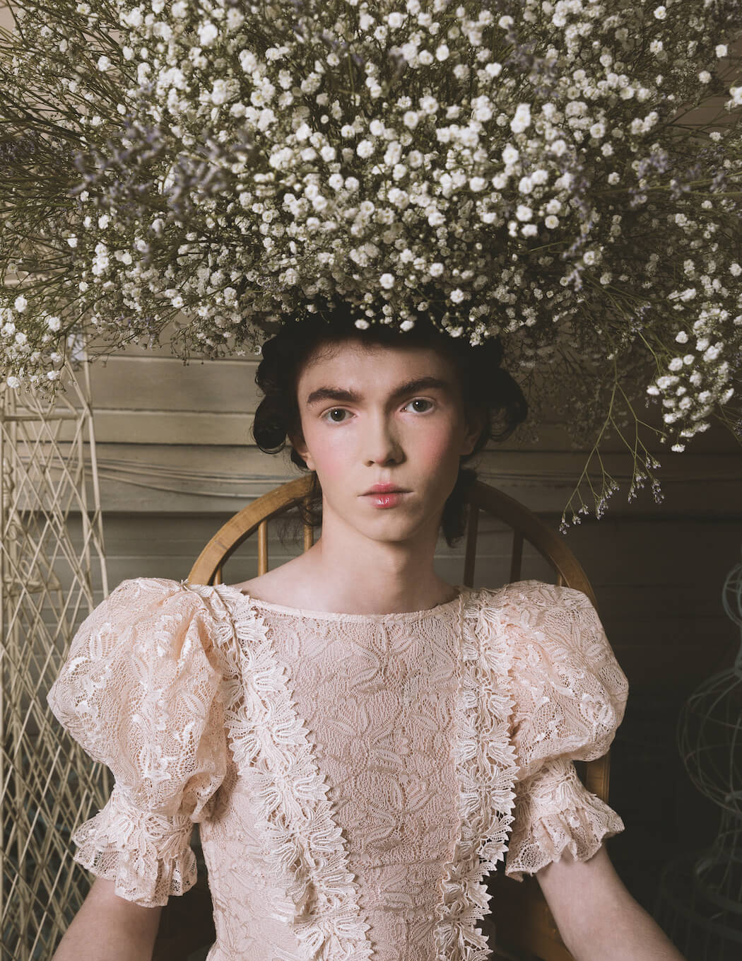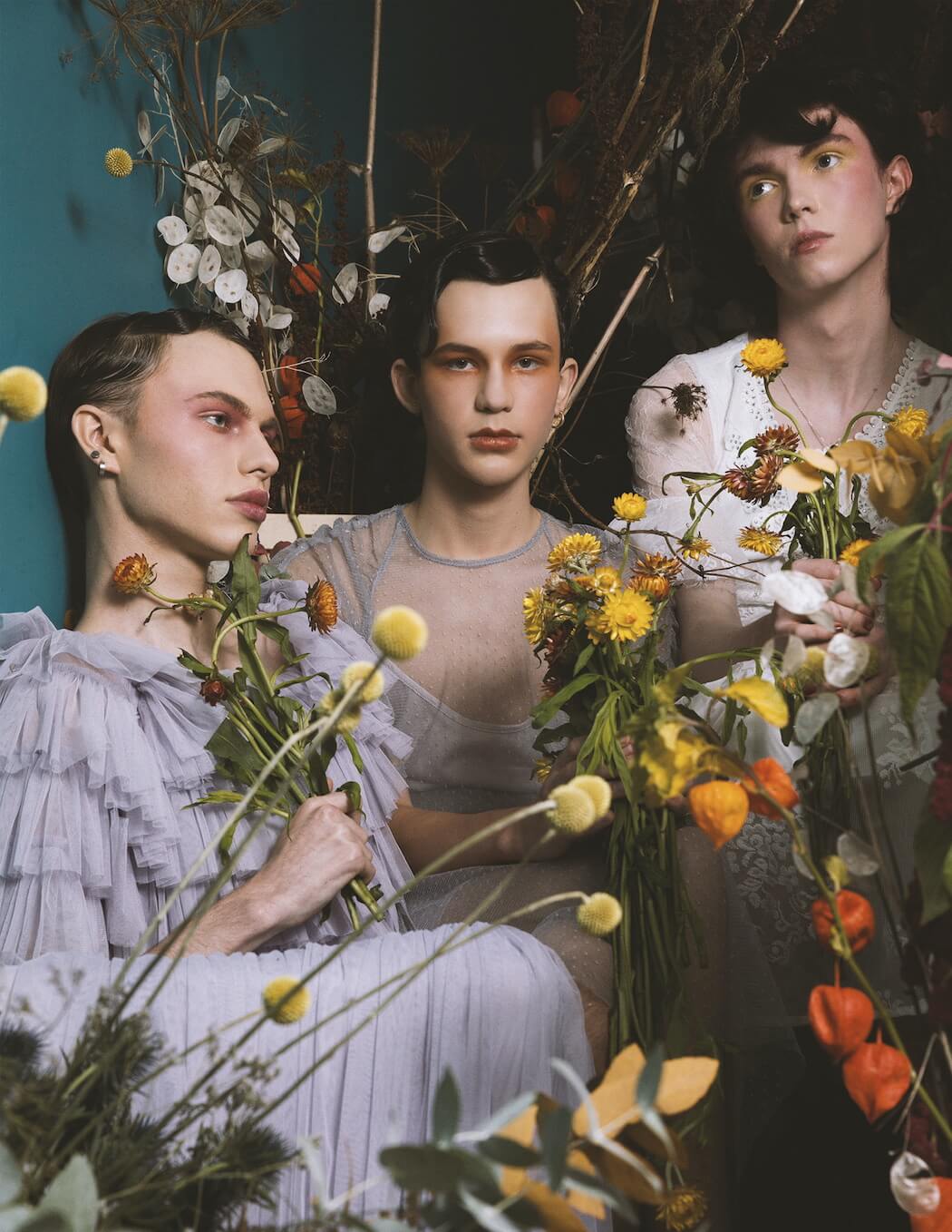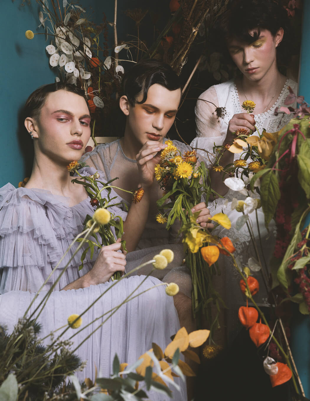 Flower Boys are about capturing elusive gender fluidity juxtaposed against a gorgeous vintage frame, with a bit of a classic fashion touch. I wanted to convey the message that classifying yourself as just male or female is no longer a relevant concept. I see gender as the way of embodying how we feel at a given moment, revealed by how we dress, describe and express ourselves.