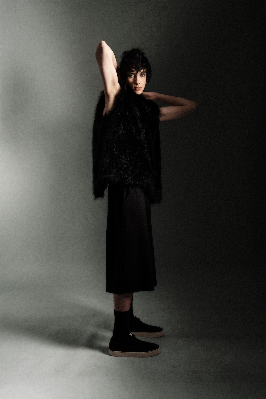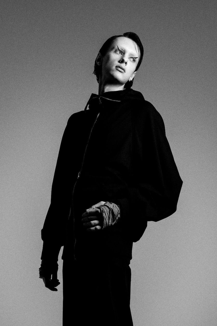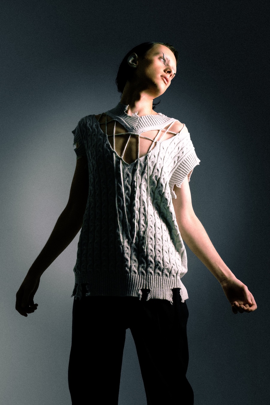 Merging grunge aesthetics with haute fashion, Hoon showcases a style that feels both raw and refined. The model’s face ignited an instinctive vision for the shoot, resulting in photographs that flawlessly encapsulate the intended vibe. It’s a captivating blend that speaks volumes about the dichotomy of rebellion and sophistication.