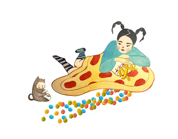 Haes Muri is a Los Angels based freelance illustrator,and a recent graduate from Art Center College of Design. She chases cats, reads haiku, and eats ice cream when she is not around her drawing pad.