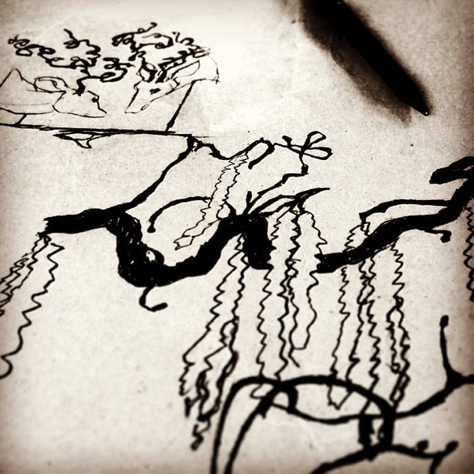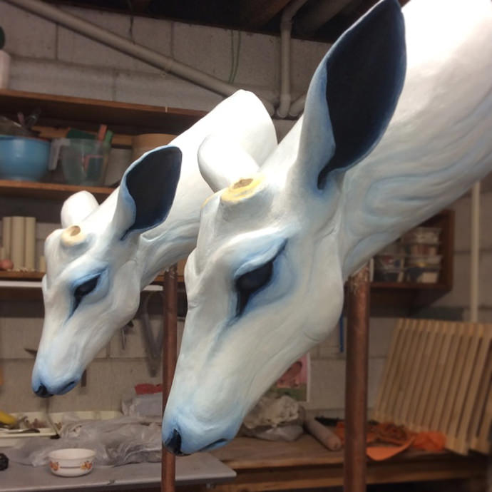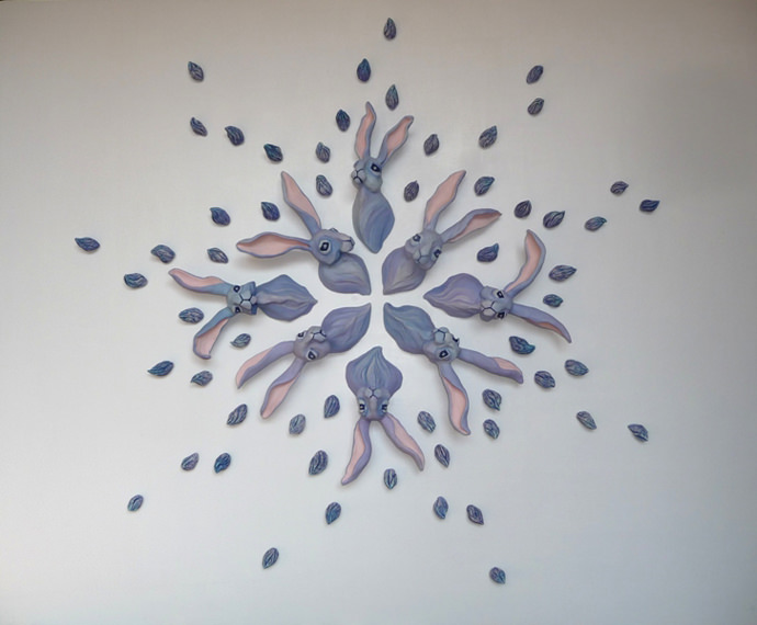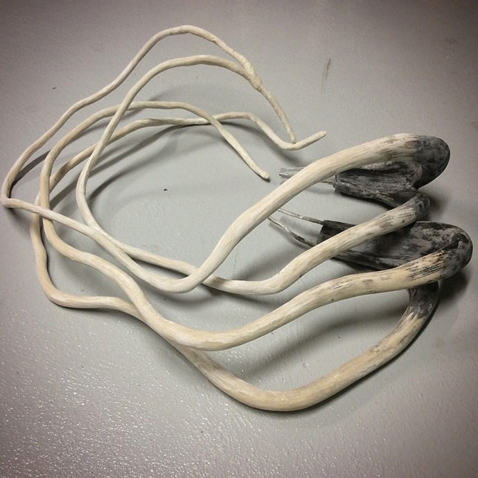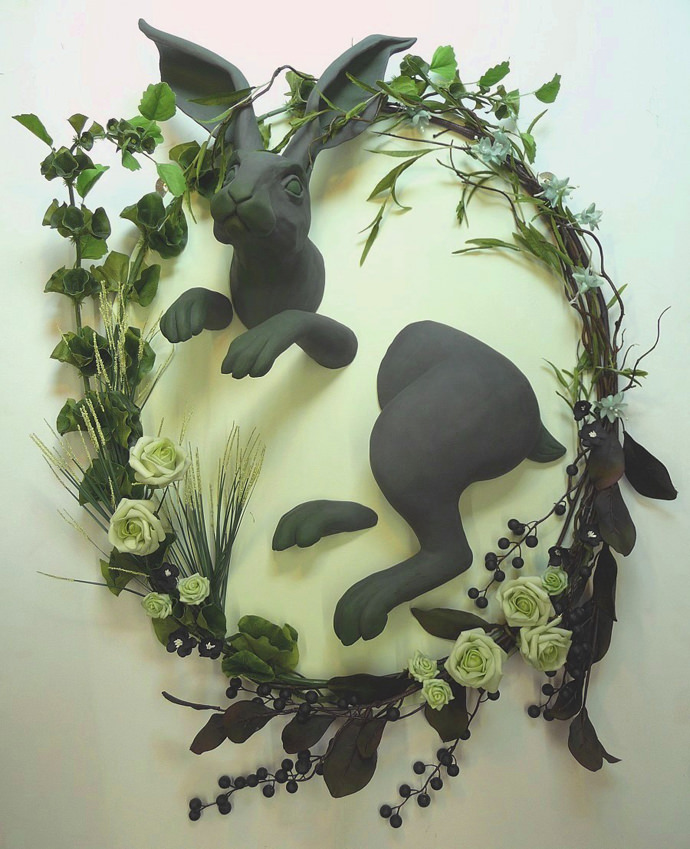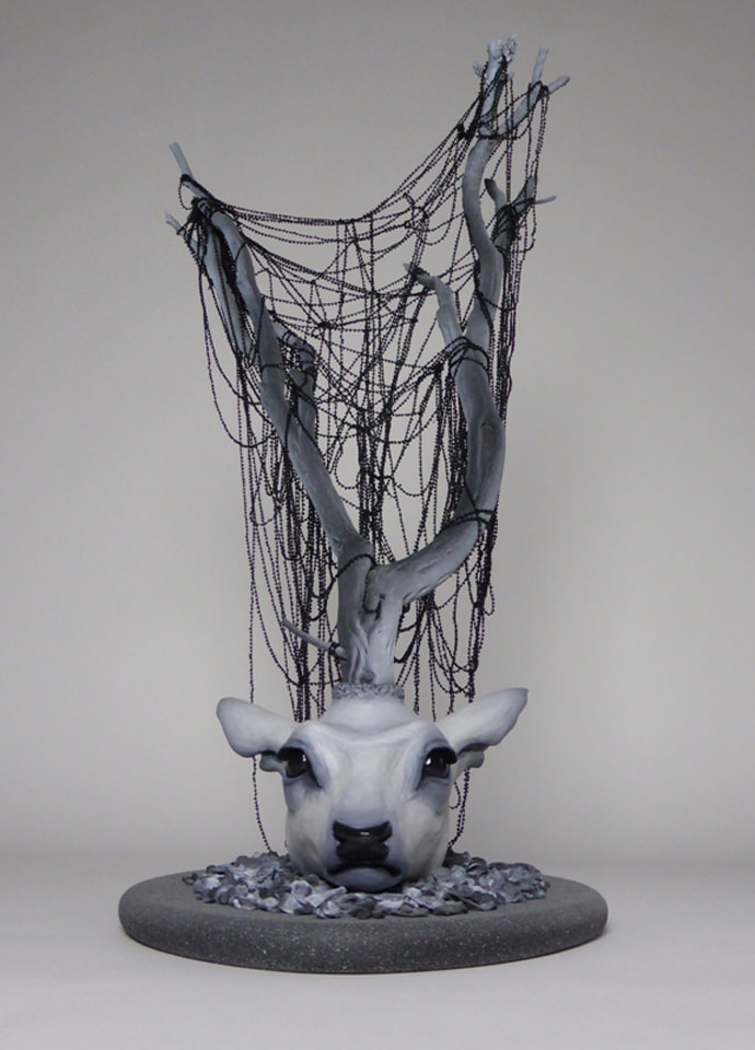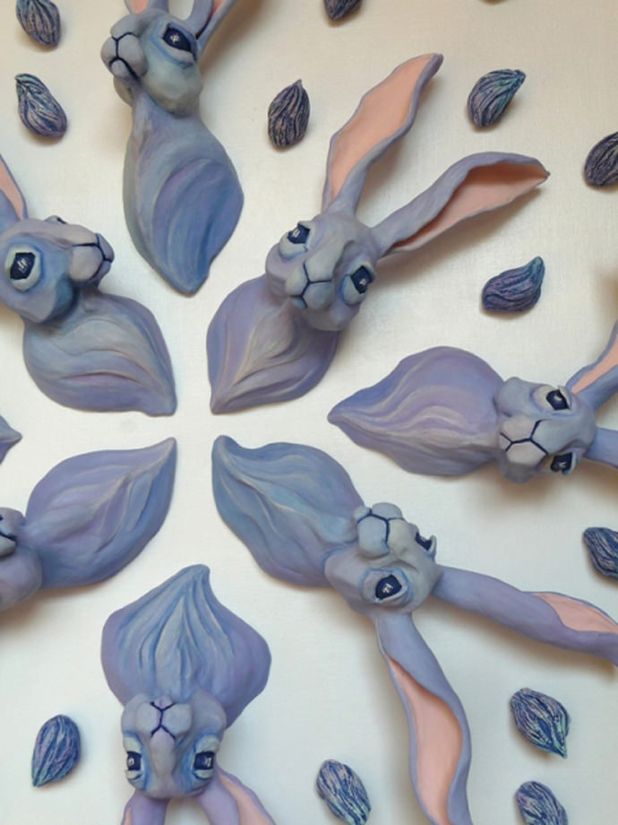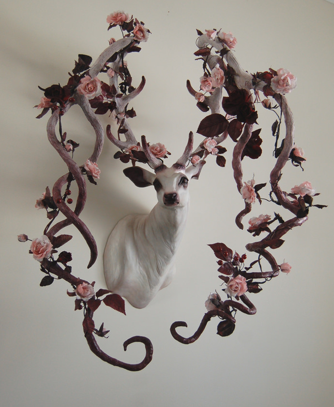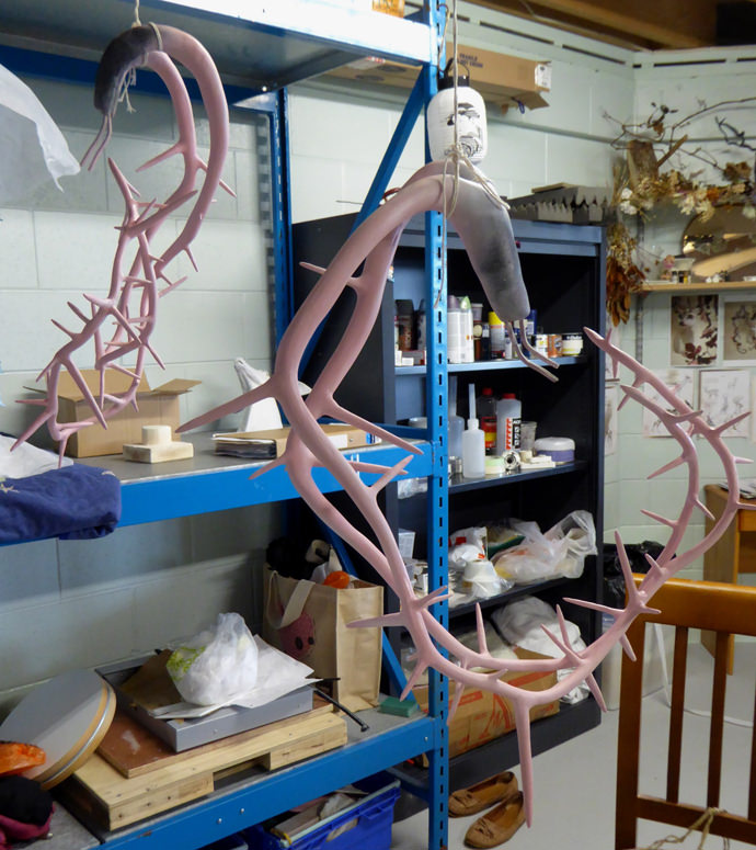 Natasha: I’m currently working on two new sculptures that I briefly mentioned earlier. One consisting of three deer. Three sisters, the fates if you will. To be adorned with a threaded lacey cascade. The other of a pinky pastel rabbit with quite fabulously grown ears…but unfortunately with a rather prickly grasp……