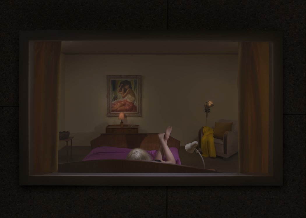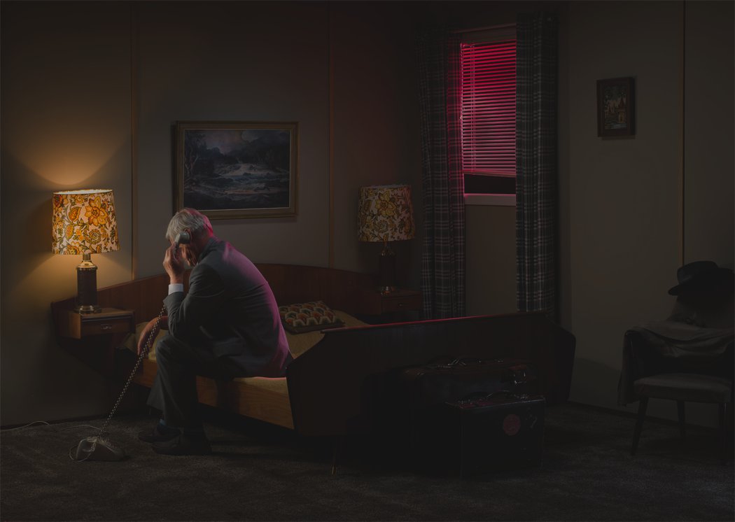 Influenced by the work of the mid century painter Hopper and the directors Alfred Hitchcock, David Lynch, as well as 19th Century painting traditions of David Caspar Frederic, his work often depicts ordinary situations infused with a unique narrative that unlocks an unexpected mystery that feels both old and new.