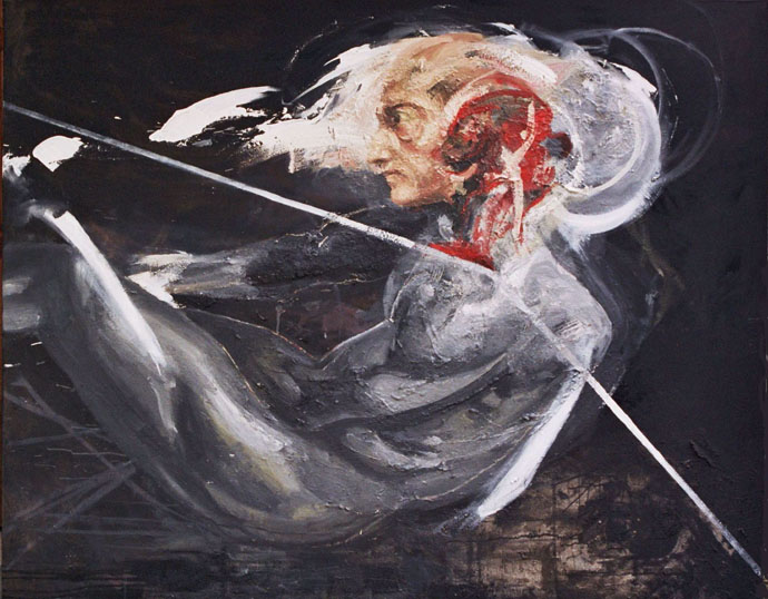 Pavle Maksimovic: I never created a painting and thought that there was nothing more I could do with it. Every painting is a never ending story, so I am compelled by my own demons to wrestle with the subject for quite some time. Sometimes paintings from a series, like “Witnesses X,Y”, are so intertwined, that they exist, almost as one single painting. Beside these obvious examples, every single painting, weather envisioned as a part of a taught through series, or a single peace, affect the next painting almost as a rule. Painting is a process, and as such it owes much to a steady, and often slow progress.