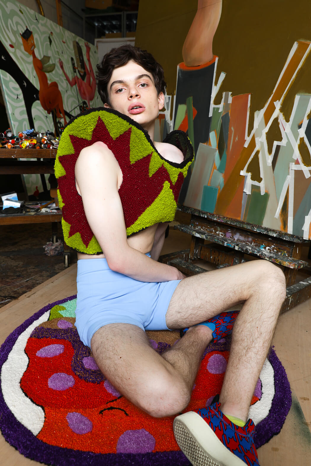 A KALTBLUT exclusive. Photography by Christian Walzl. Models are Leon Jérônimo Bürgi and Denis Charles Emmenegger. Hair and make up by Vanessa Cisullo. Styling by Carlos Pereira. Artworks by Dimitri Horta. Carpet Artworks by Talaya Schmid.