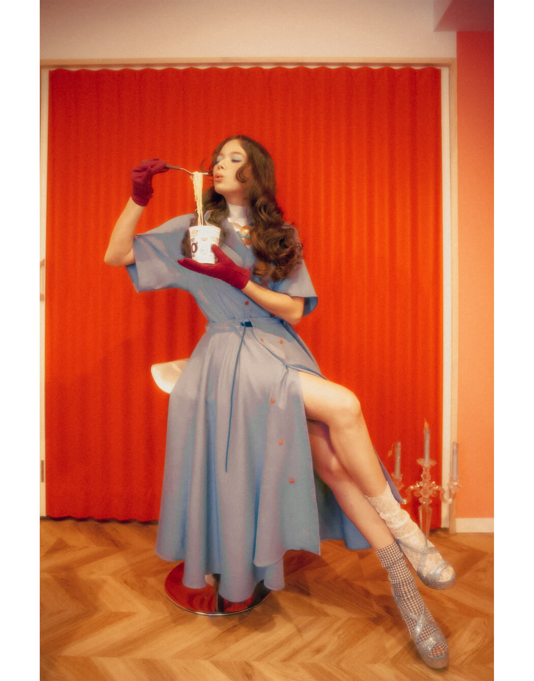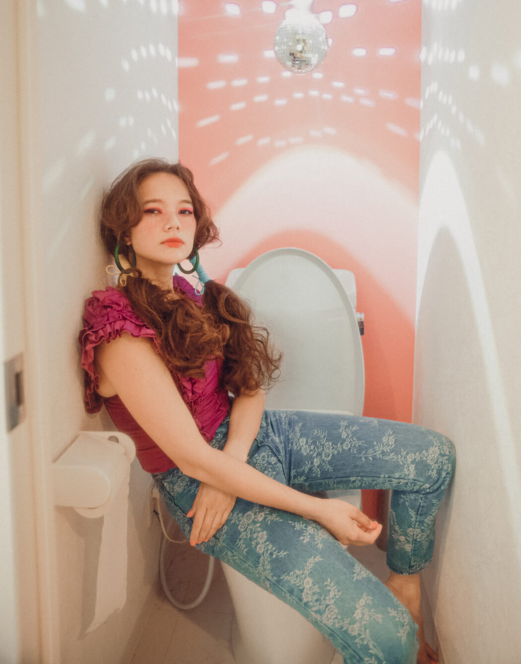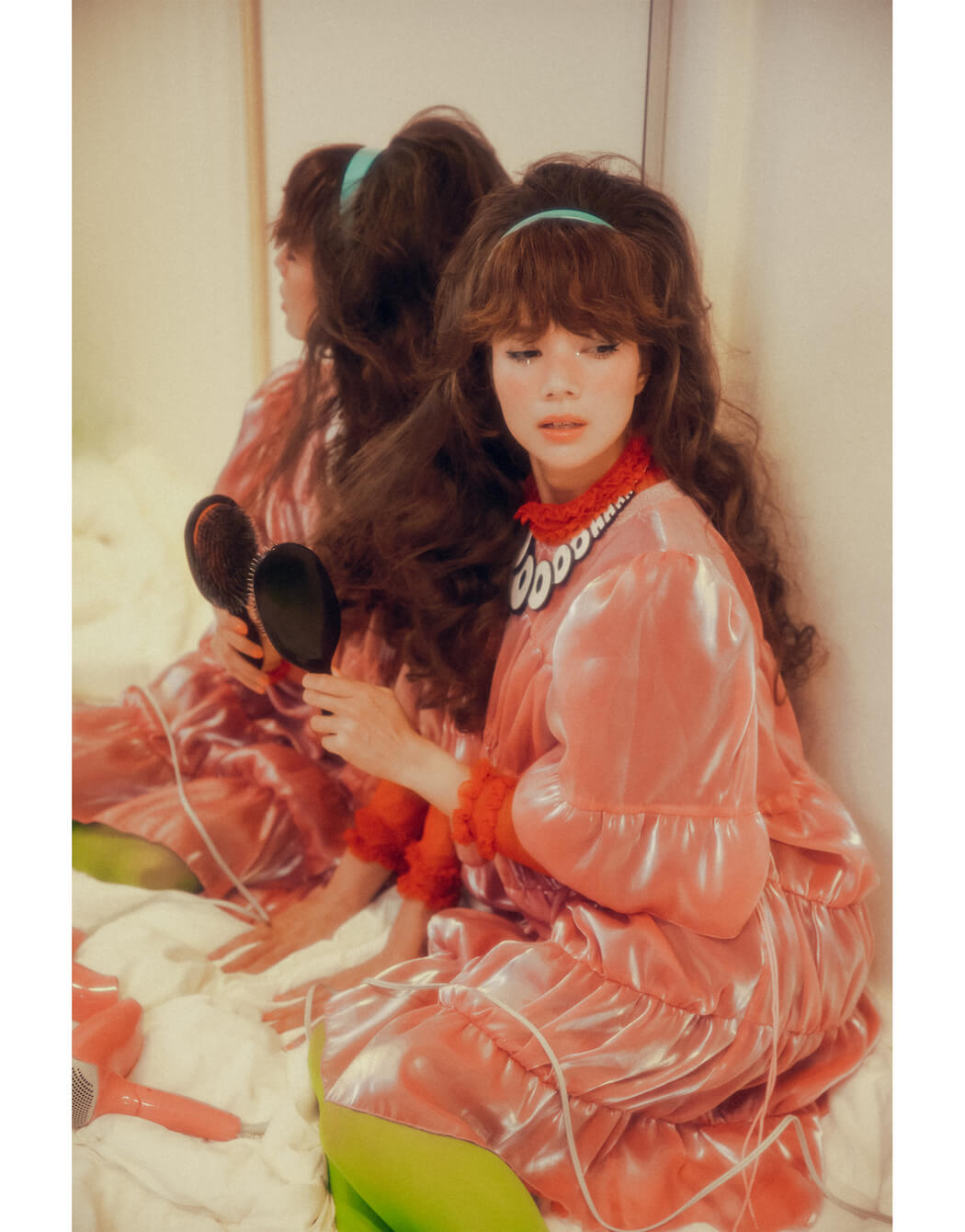 A KALTBLUT exclusive. Photography by Maho Yamaguchi. Model is AKEMI RODRY signed at NUMBER EIGHT inc. Styled by Masumi Yakuzawa. Hair by Koki Noguchi. Make up by Kumico Ando. Brands are KANEHIRO, NON TOKYO, Tatty Devine, ANDYKEY, FAKUI, MiuMiu (yaiya vintage, ISSEY MIYAK (yaiya vintage).