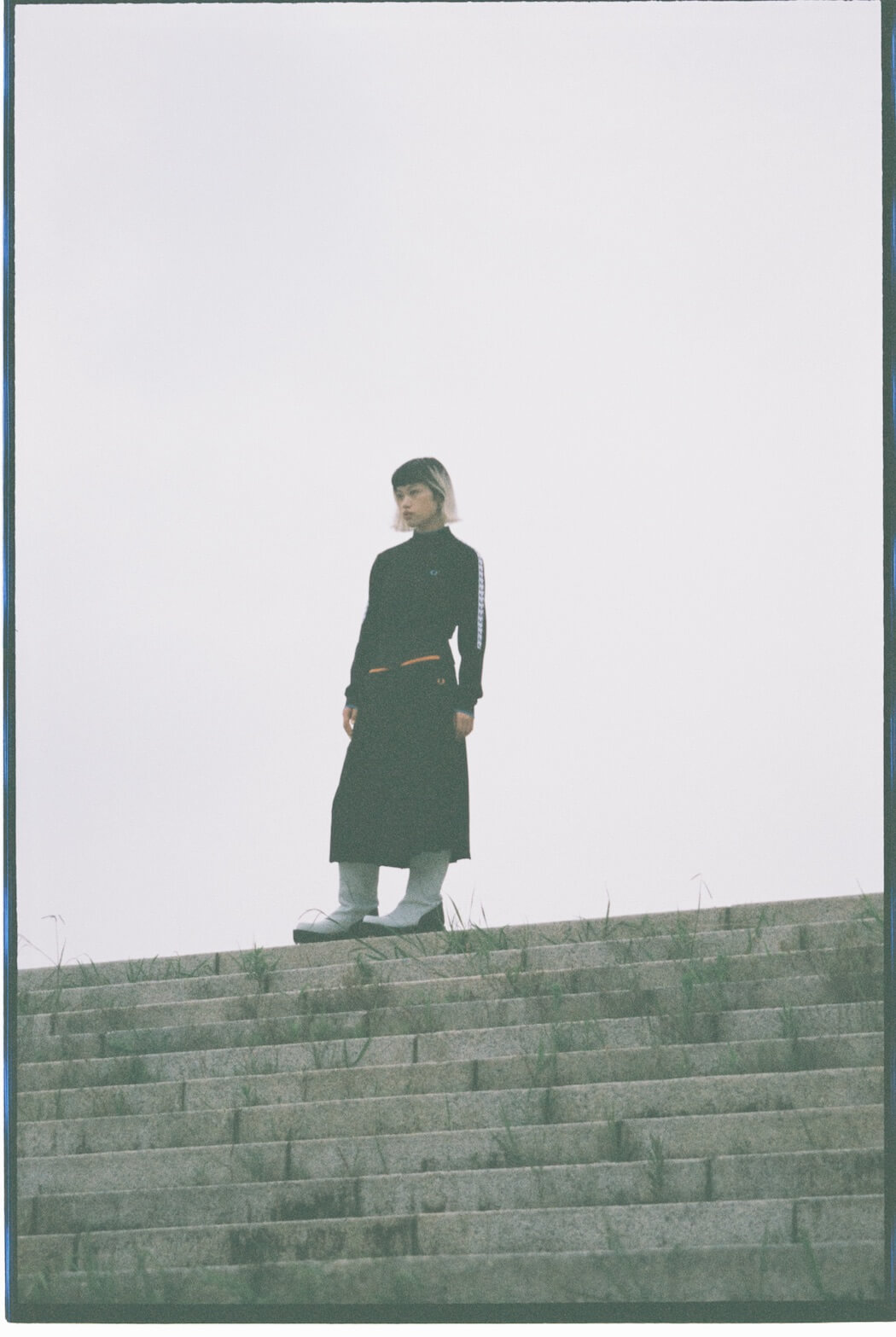The Fred Perry polo shirt is reinterpreted through Akane’s distinctive lens; based on her signature ribbed top she transforms the polo shirt presenting it fully knitted, colour blocked and with stripes and texture via chenille and ribbing.