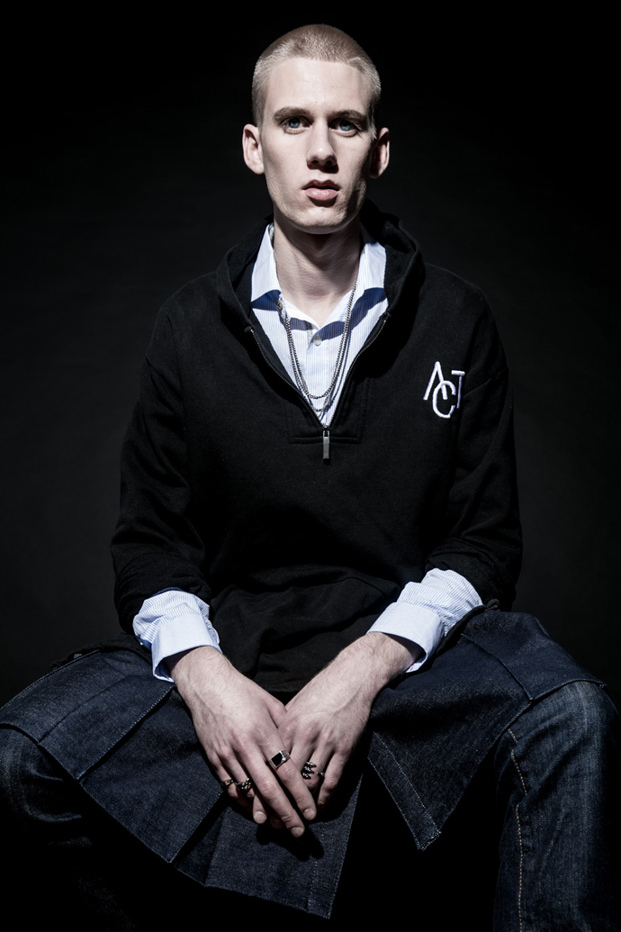 Model right: shirt by Ance Studios kilt by FreeMen by Mickey Sneakers by Alejandro Ingelmo
