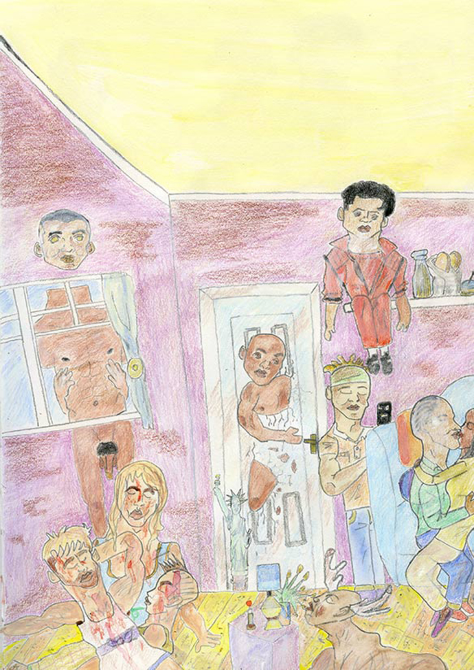 May I introduce you to the amazing artwork by UK based artist Nicola Frimpong AKA FREEAKPONG. Her work has been shown at The Saatchi Gallery, The Museum of Everything Tate Modern London 2010. The Henry Boxer Gallery and so on. The artist says: “I ‘m an figurative artist. I’m interested in death, violence, sexuality, and race. My subject matter is a diary all of my thoughts and feelings unearthed, nothing is held back. The human body becoming an instrument of exploitation.”