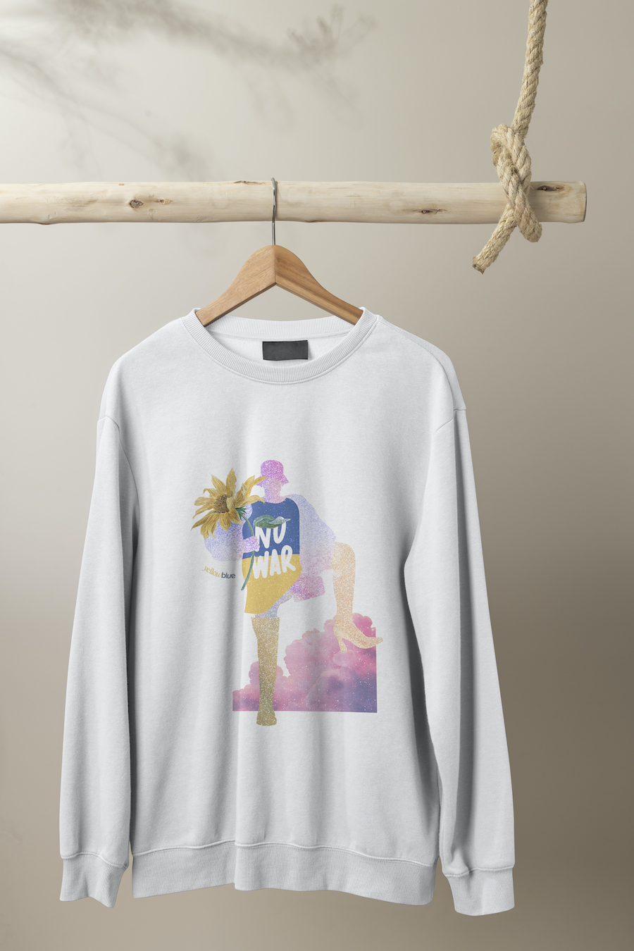 “This print is based on one of my personal signature looks and «NO WAR» on the colours of the Ukrainian flag sends a clear message nobody could unsee. The horrible war in Ukraine is not over and we will not be silent about it. Also, I said it before and I say it again: fashion is political. It does matter what you wear”, – Frank Wilde says.