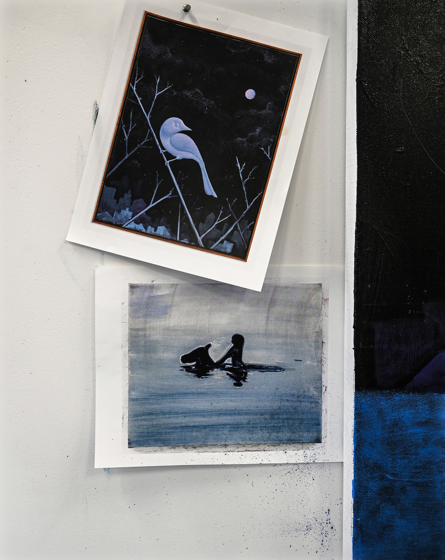 They need to work together. I think it’s about finding a personal balance. You have to be guided by intuition but then you also have to constantly check yourself and learn. I try to stay non-analytical in the studio and purposefully avoid getting too much in my head. I try to keep my work simple, almost hieroglyphic. But I also read every morning outside of the studio. I like to look at art and watch how nature and society function. In some ways I need to lean on my analytical side when Im executing a bigger piece because I’ll think about it beforehand, I’ll lay out the paper first, and I’ll work out the little compositions. And the intuition would come in the shade of the colour, or the glow. It’s very much about what kind of boat you’ll create—how much of it is going to be wind how much is going to be rotor and what the relationship between the two will be to steer you.