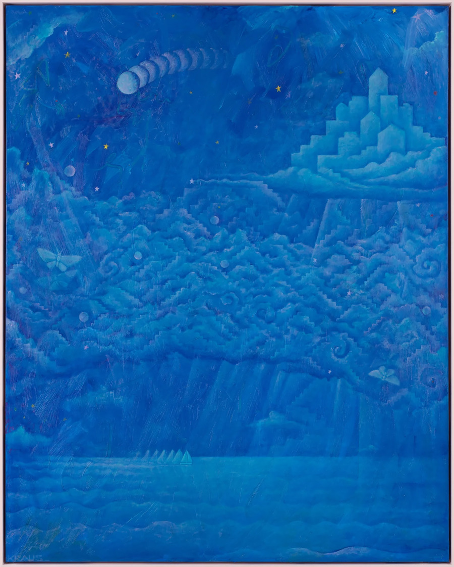 An interview and photography by Olivia Wünsche. Born in Ohio, US in 1987, and currently circulating between Berlin and New York, Dylan Solomon Kraus is best known for his oneiric nightscapes incorporating themes of the human psyche, clockwork interplays of the Cosmos and multilayered spiritual symbolism. Growing up hiking and camping, the artist’s early experiences seem to have instilled in him a profound reverence for Nature, now being visibly foundational to his work.