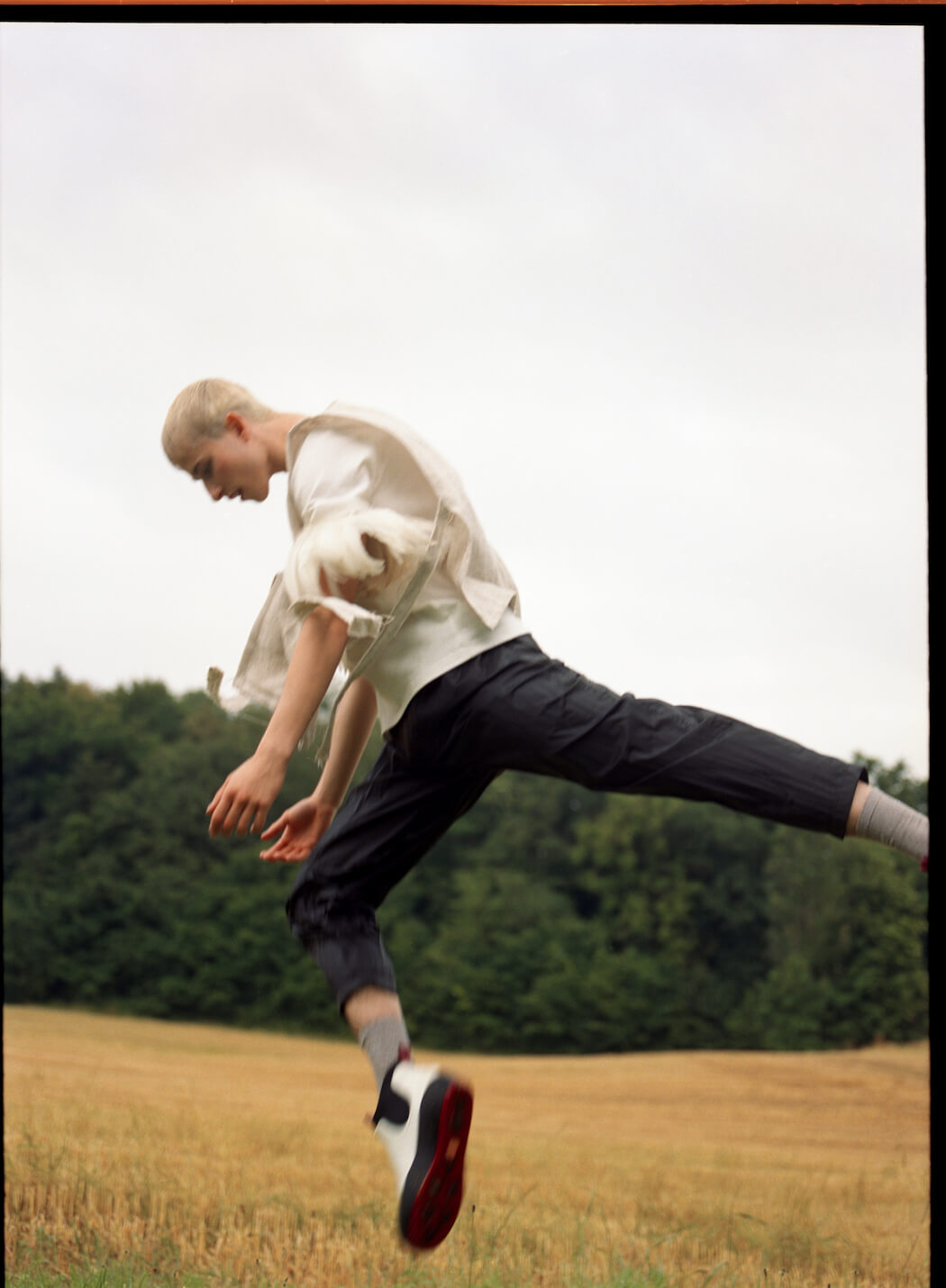A KALTBLUT exclusive. Photography by Mica Candela. Styling by Andrea Tzelepides. Make Up & Hair by Melanie Rieberer. Dancers are Violetta Keller from Finnish National Ballet and Severin Brunhuber from Bavarian State Ballet. Brands are FTA Munich (Film and Theater Equipment), Prada, Acne Studios, Rich & Royal, Tory Burch, Scotch & Soda, Ba&sh, Cos, Falke, Salvatore Ferragamo, Paul Smith, Uniqlo, Bally, Max Mara, Champion, Etro, Topshop.