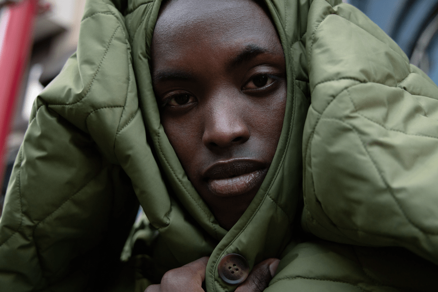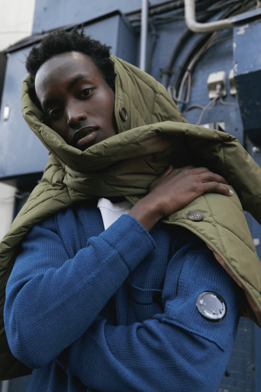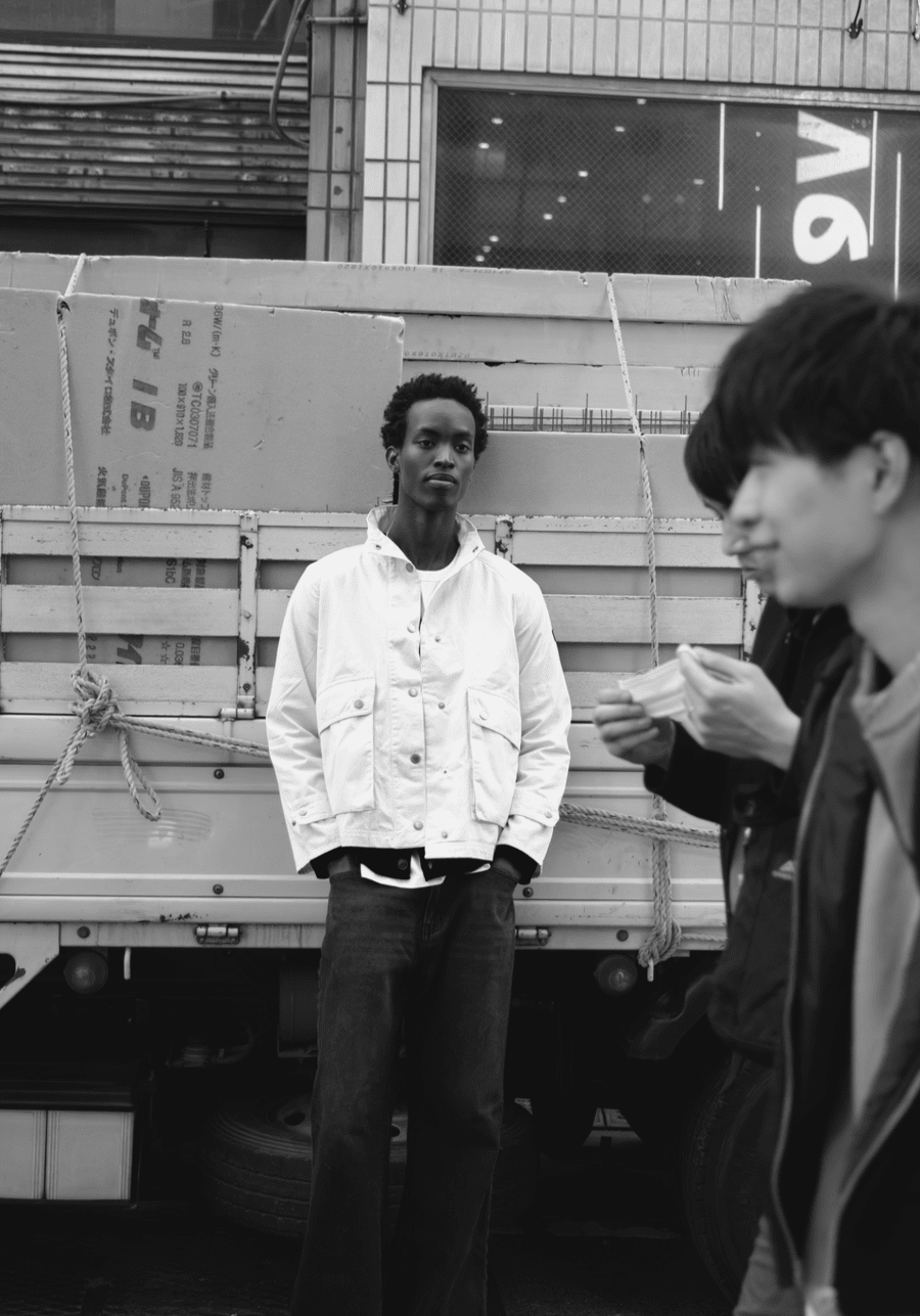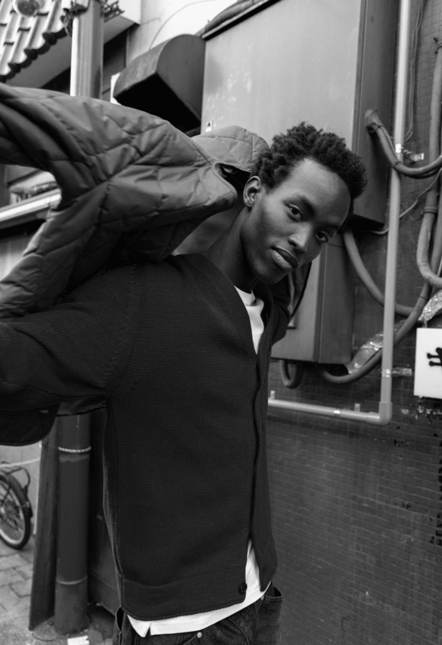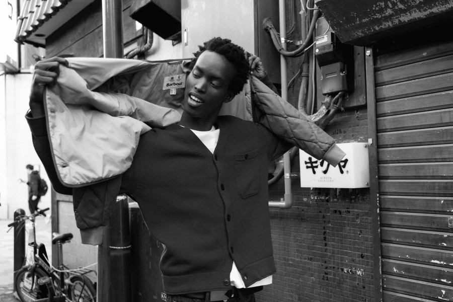 A KALTBLUT exclusive starring Pivot Aurel signed at Twenty Model Management. Photography and styling by Nora Maafa. Brands used are Barbour, C.P. Company, and UGG. In the bustling streets of Tokyo, Pivot Aurel Sentore embodies the fusion of resilience and style. Hailing from Burundi, his journey to the fashion capitals of the world is a testament to the transformative power of following one’s dreams.